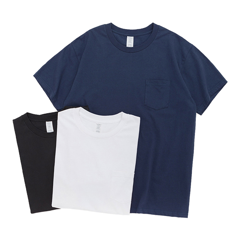 日系贴口袋纯棉宽松情侣T恤衫夏