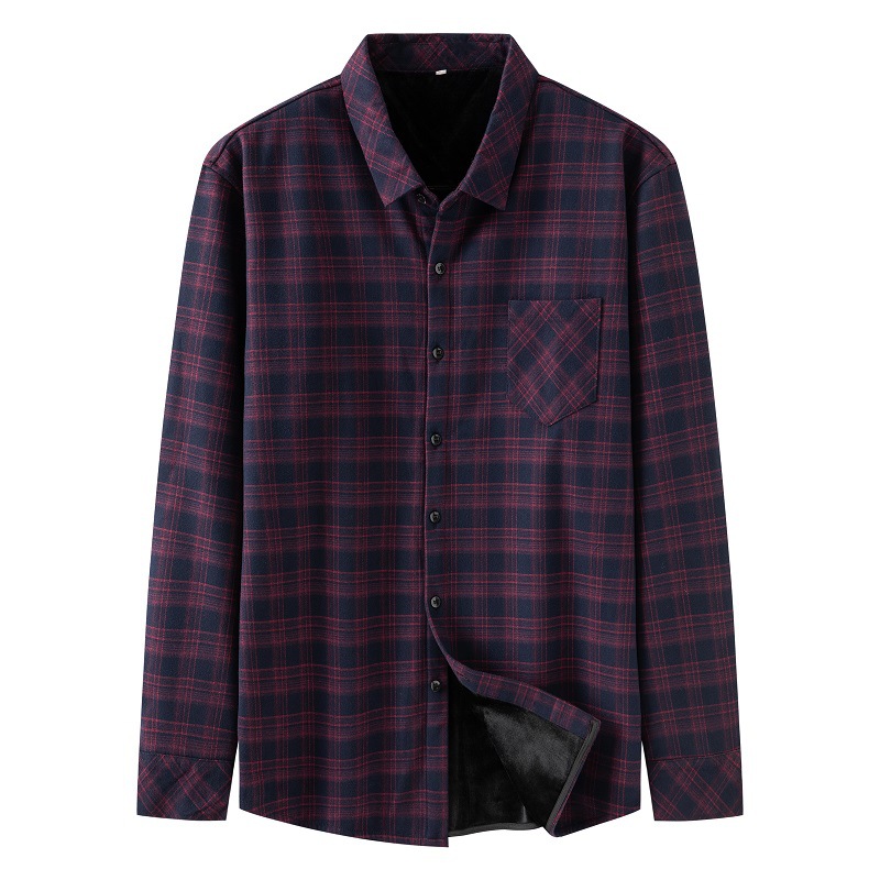 特大号冬加绒加厚保暖格子衬衫男