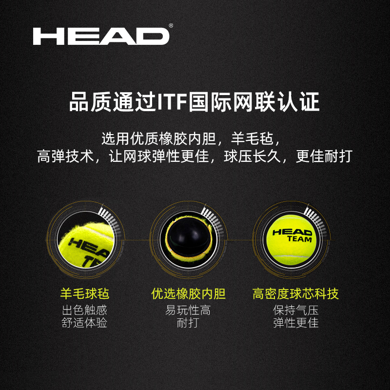 新品HEAD海德TEAM练习训练耐磨筒装网球4粒装PRO专业比赛网球