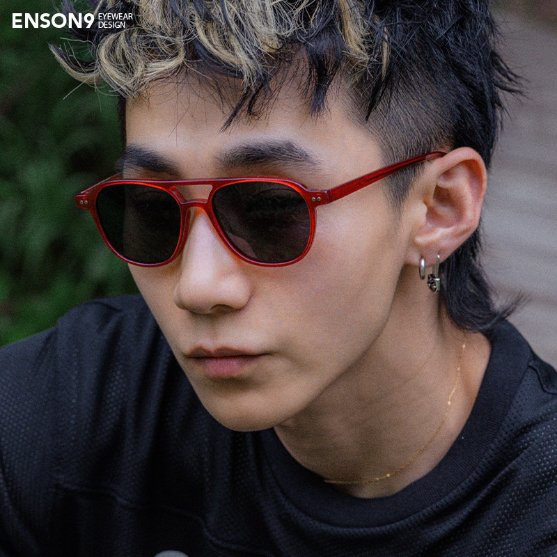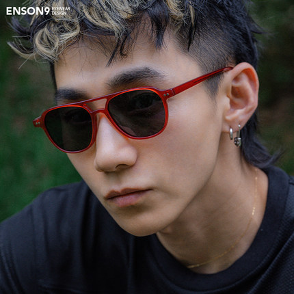 enson9复古飞行员板材蛤蟆镜潮男女 痞帅Y2K红色大方框偏光太阳镜