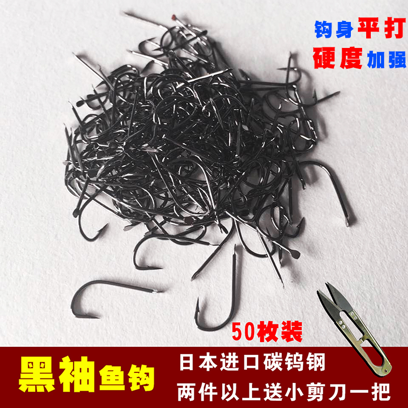 黑袖鱼钩日本进口0.5 小号袖钩散装溪流有倒刺钓鲫鱼白条秀钩正品