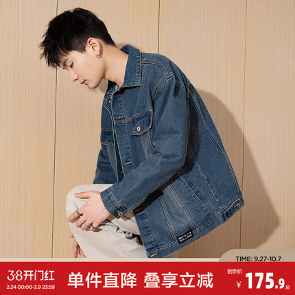 唐狮春新款牛仔外套男生复古水洗做旧夹克青少年潮流休闲装bd