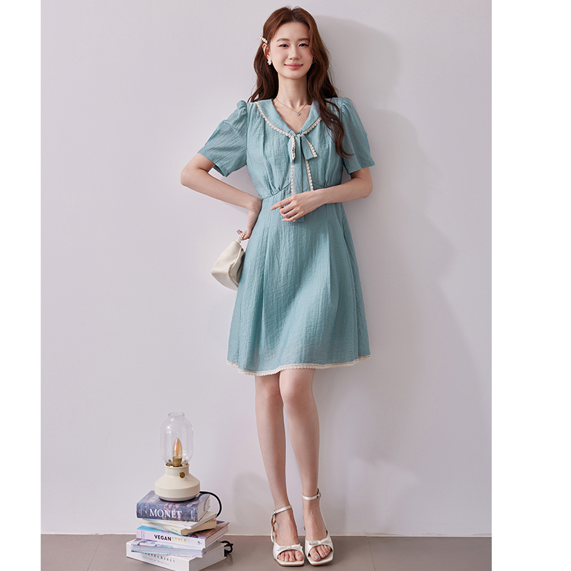 绮娑大码连衣裙2025年夏季新款气质娃娃领减龄显瘦胖mm收腰A字裙