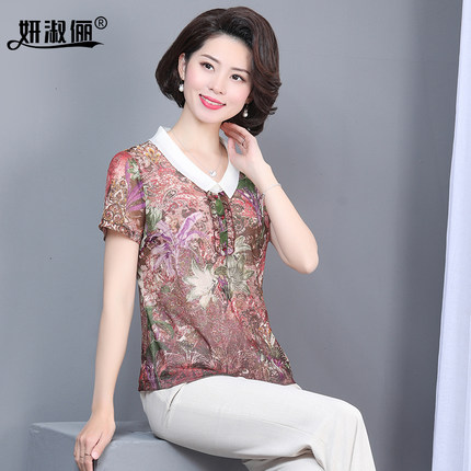 妈妈夏装套装时尚新款台湾纱花衬衣小衫洋气高端中年女士t恤上衣