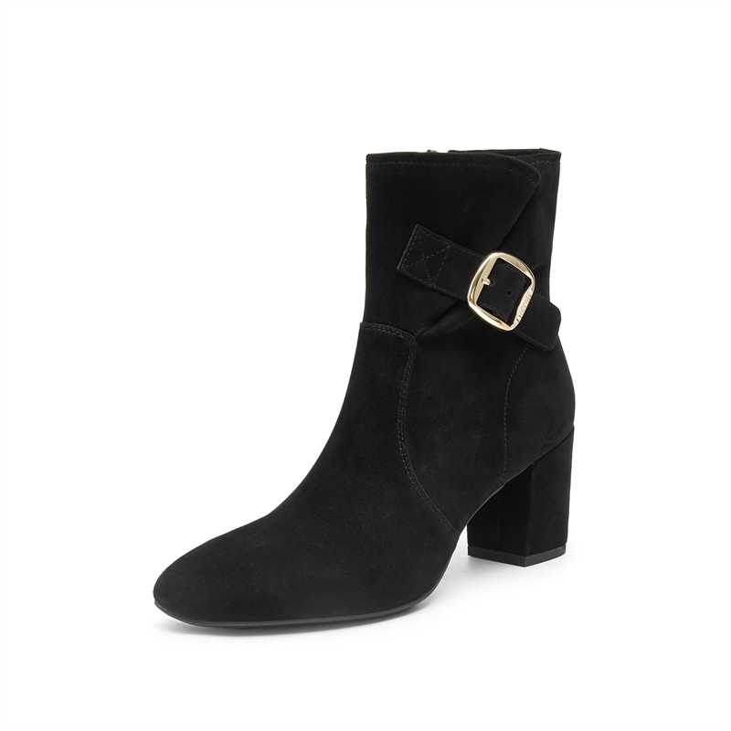 思加图2024冬季新款女鞋高跟短靴时装靴气质通勤女靴皮靴EYJ06DD4