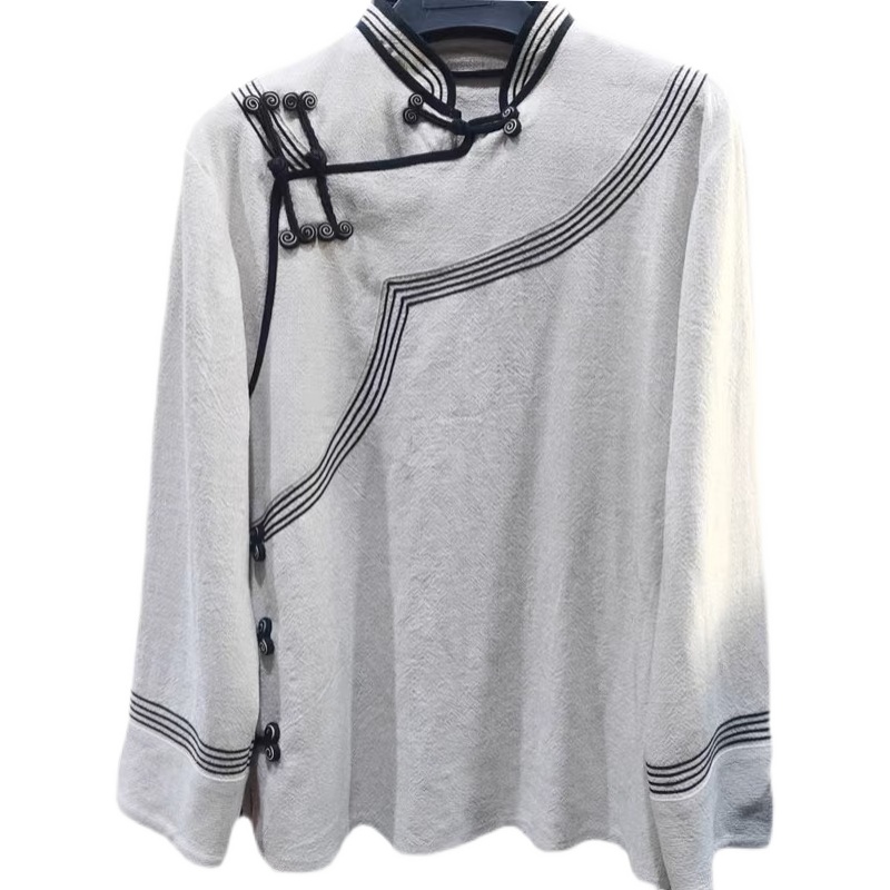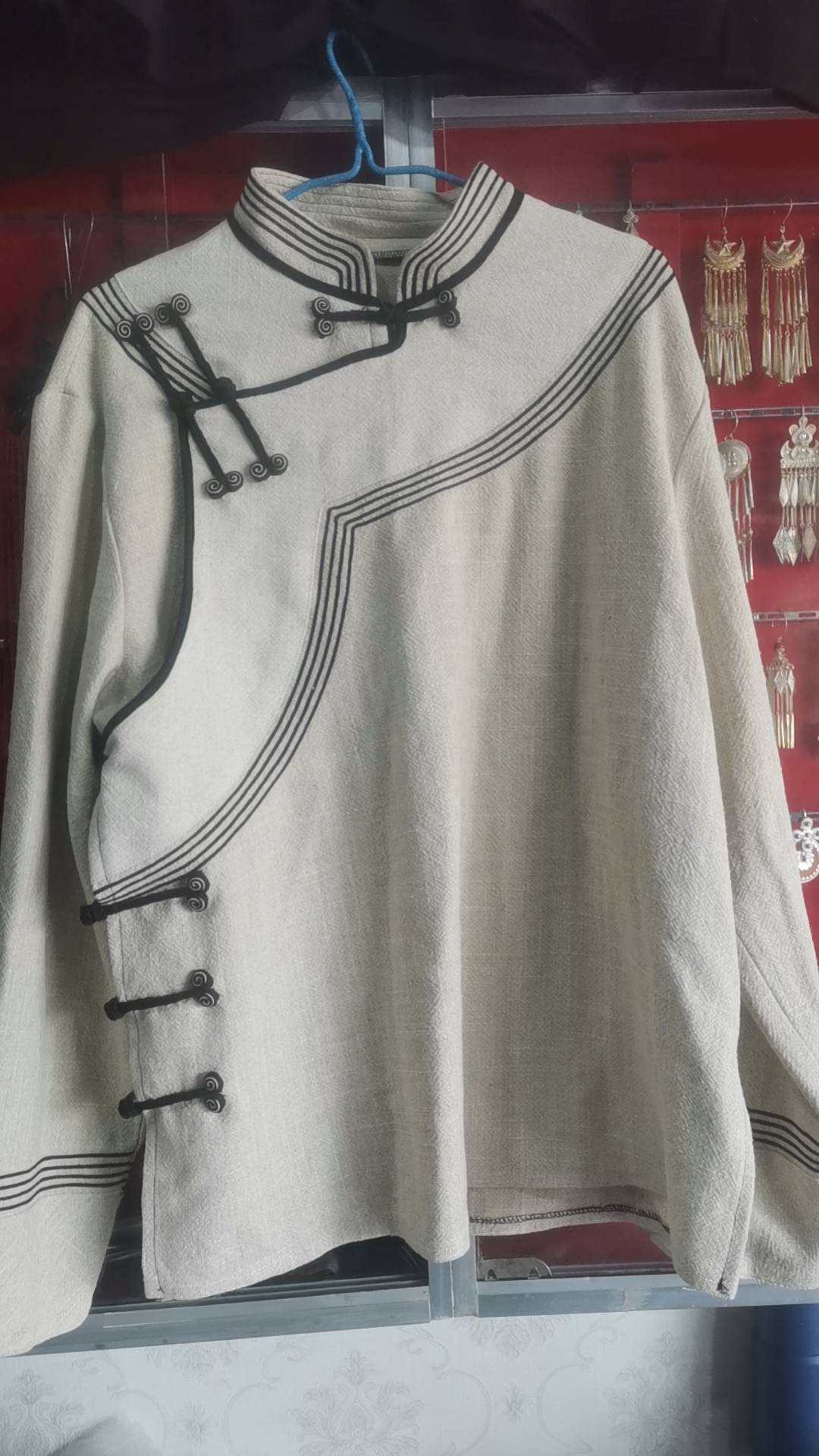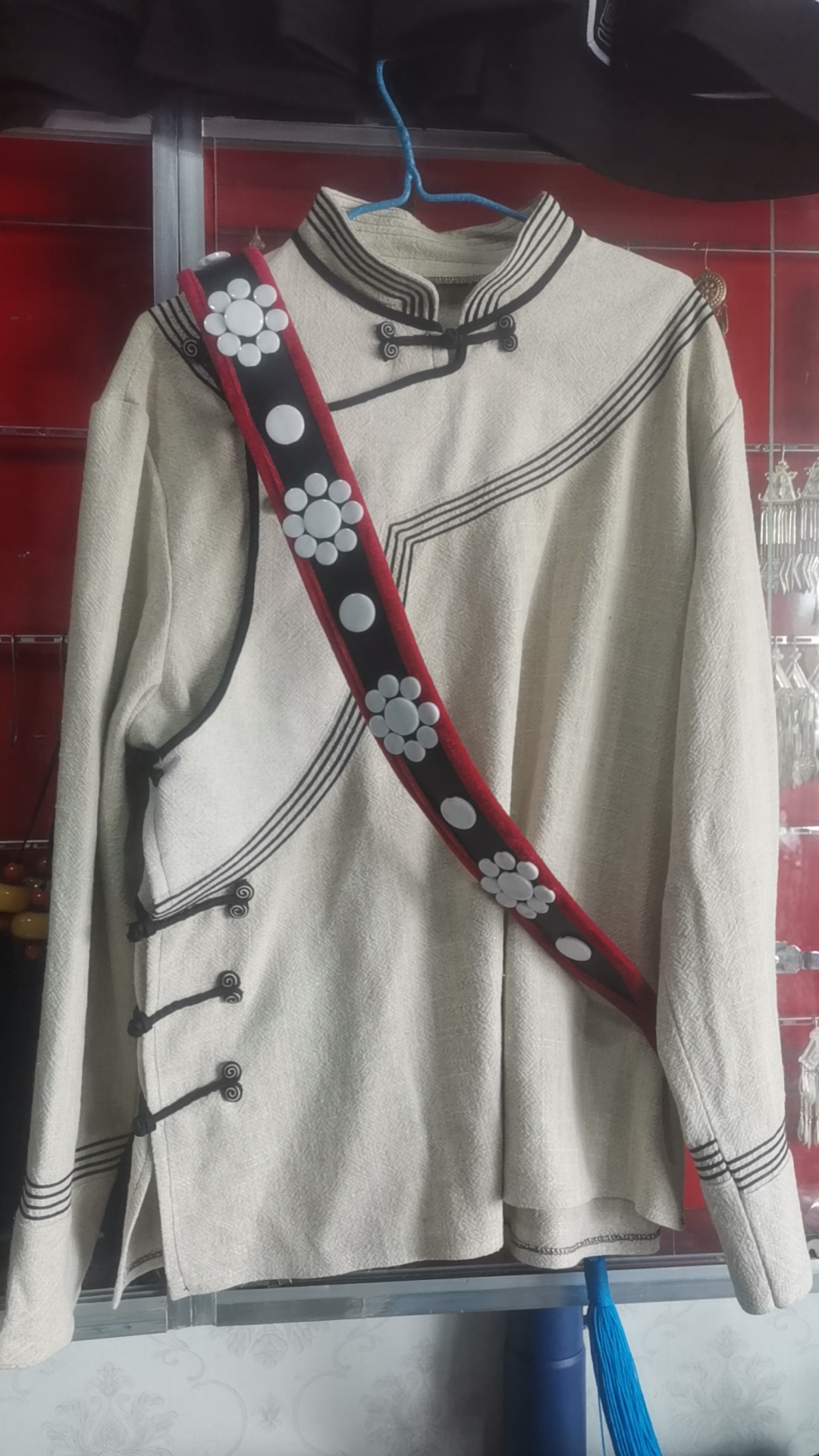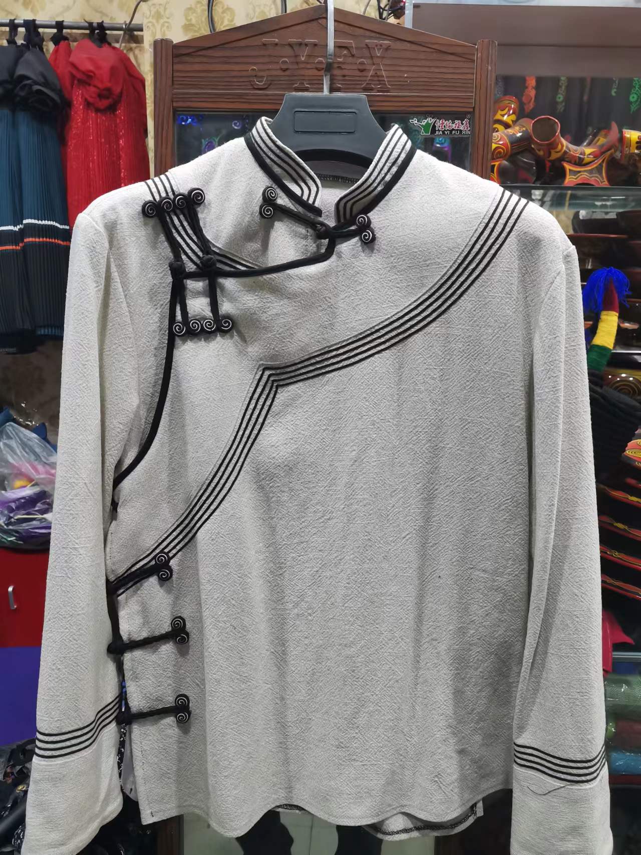 新款凉山彝族服装男装白色棉麻纯手工外套 男士长袖彝族服装
