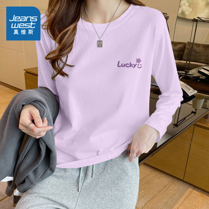KMV真维斯紫色纯棉长袖打底衫女早秋季2025新款小个子圆领t恤上衣