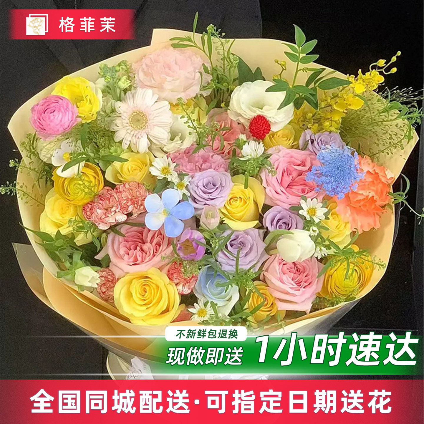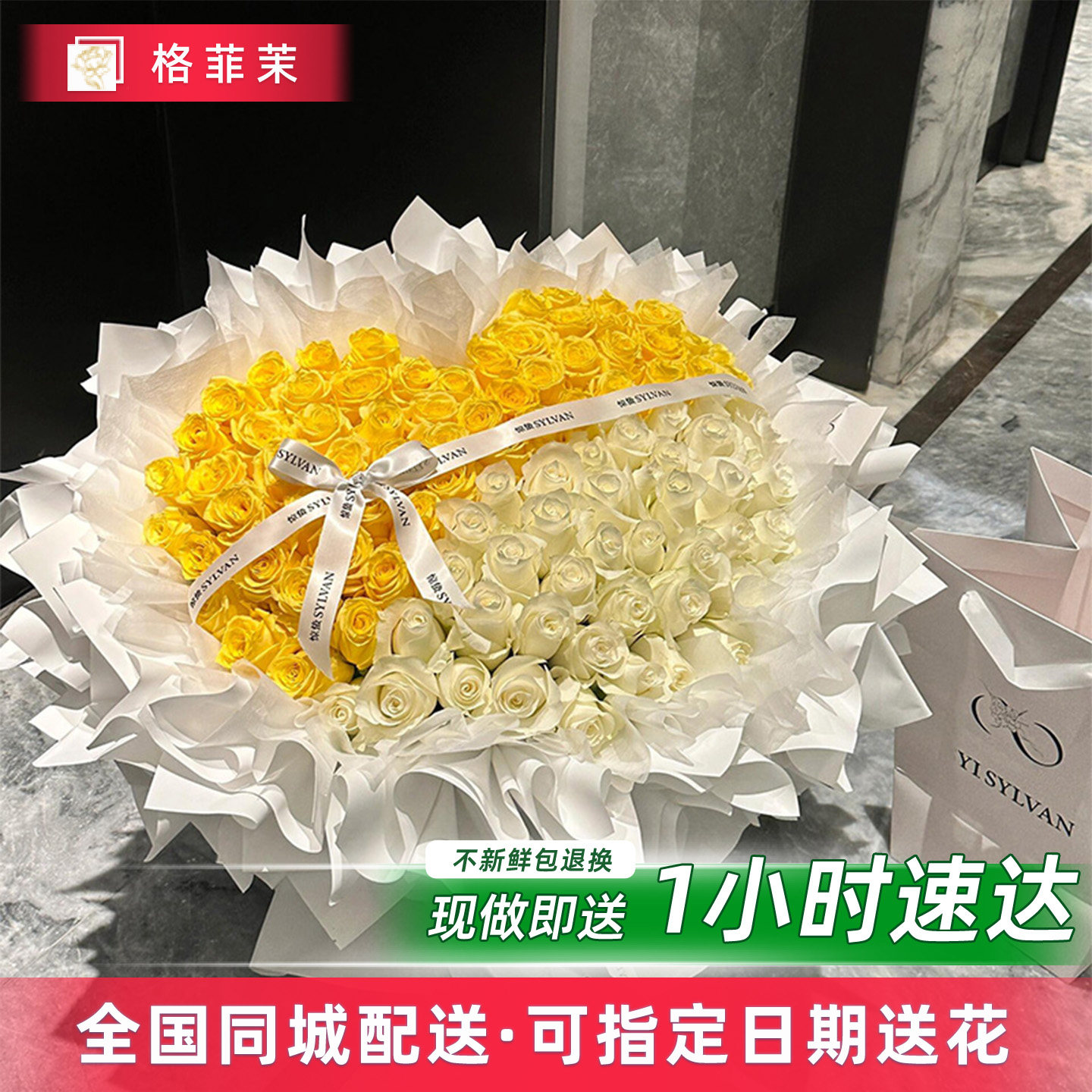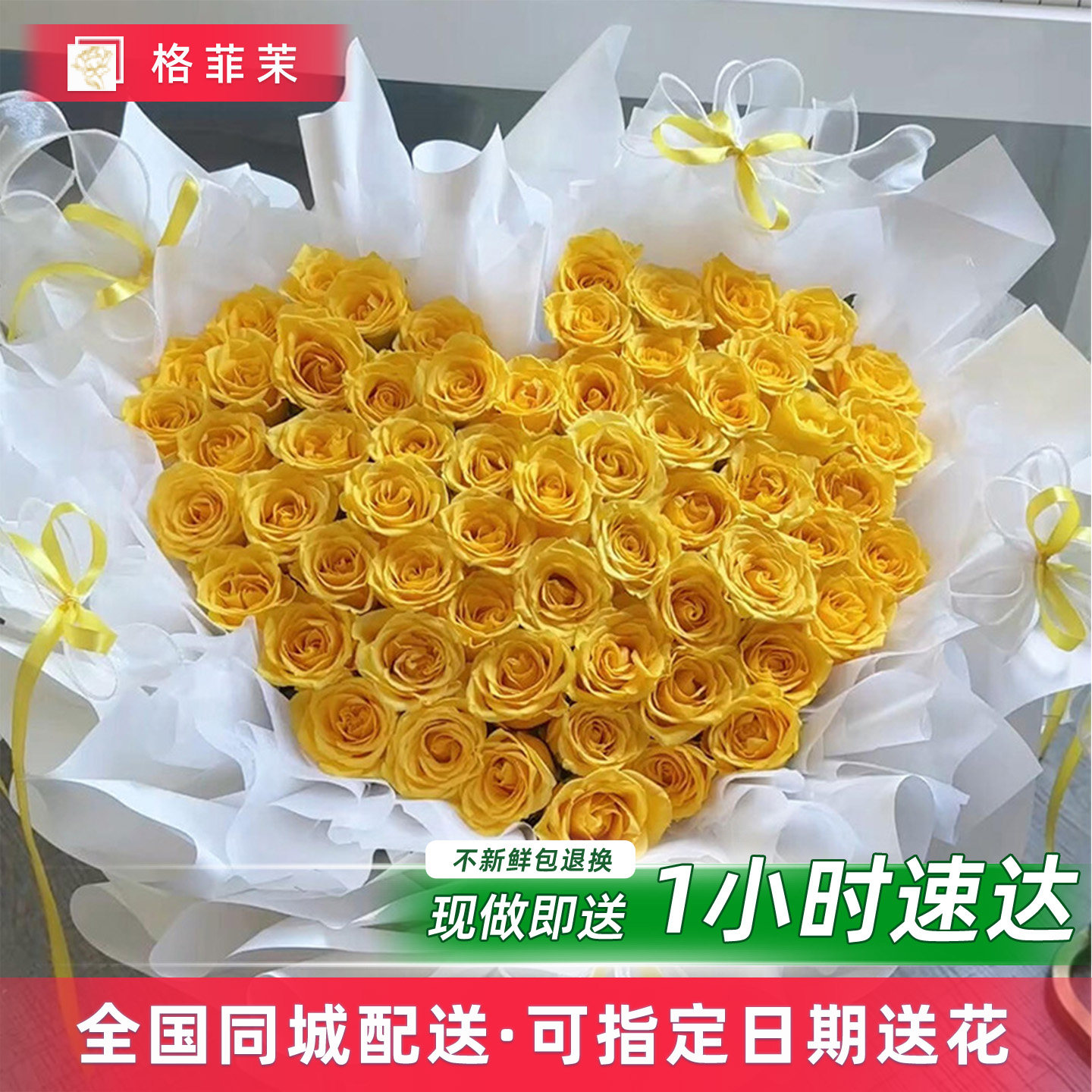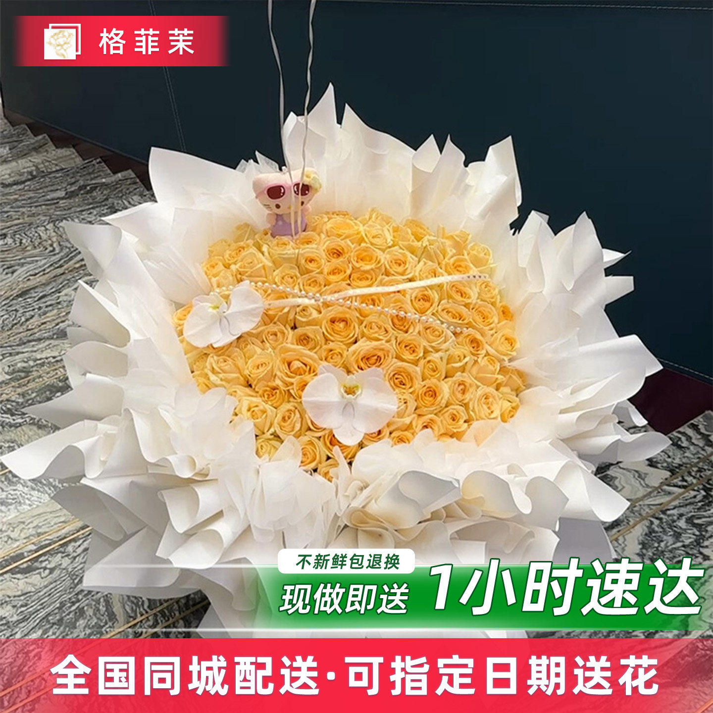 全国黄玫瑰鲜花花束速递同城配送女友闺蜜生日礼物北京上海深圳店