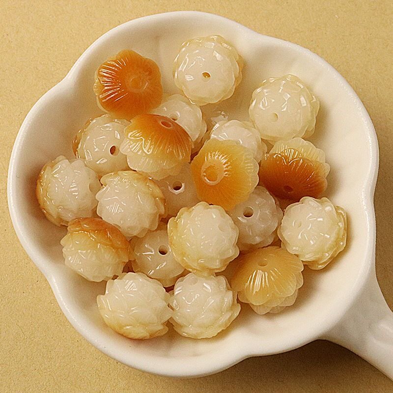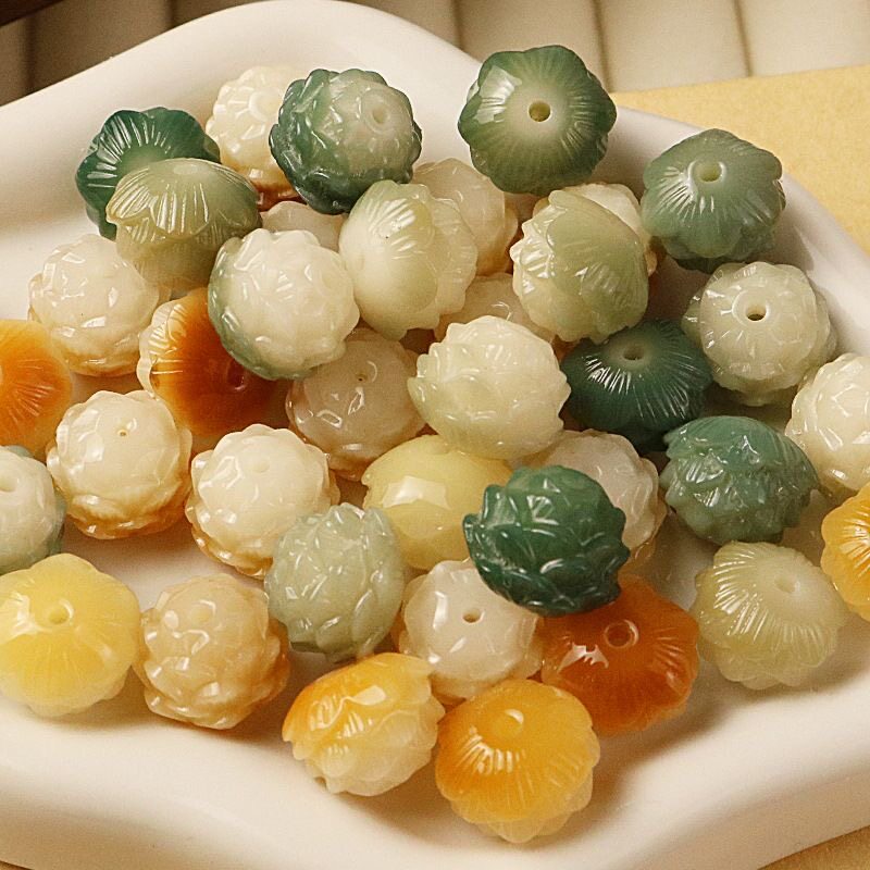 天然菩提根雕刻莲花绿色飘花碳烧五层莲花手工DIY手机链手串配件
