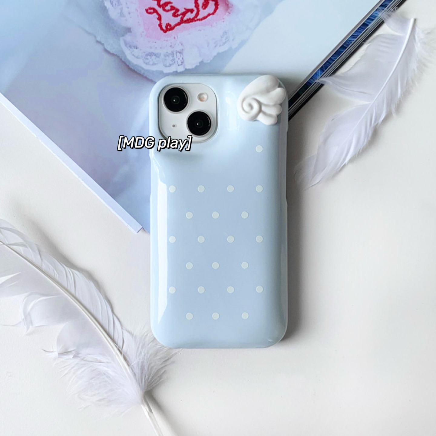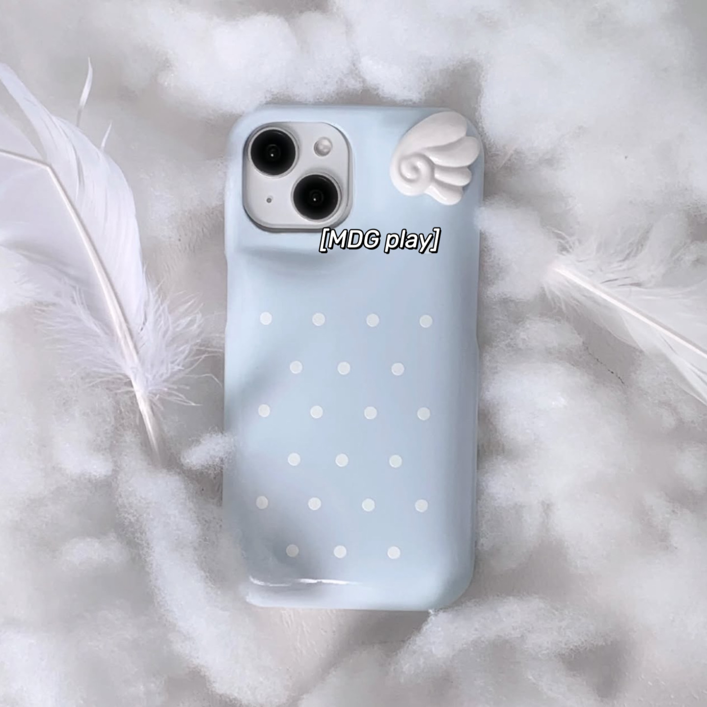 苹果韩系ins小众设计感简约高级感可爱少女心卡通天使翅膀手机壳16promax/15pro/14/13pu皮肥皂壳半包保护套