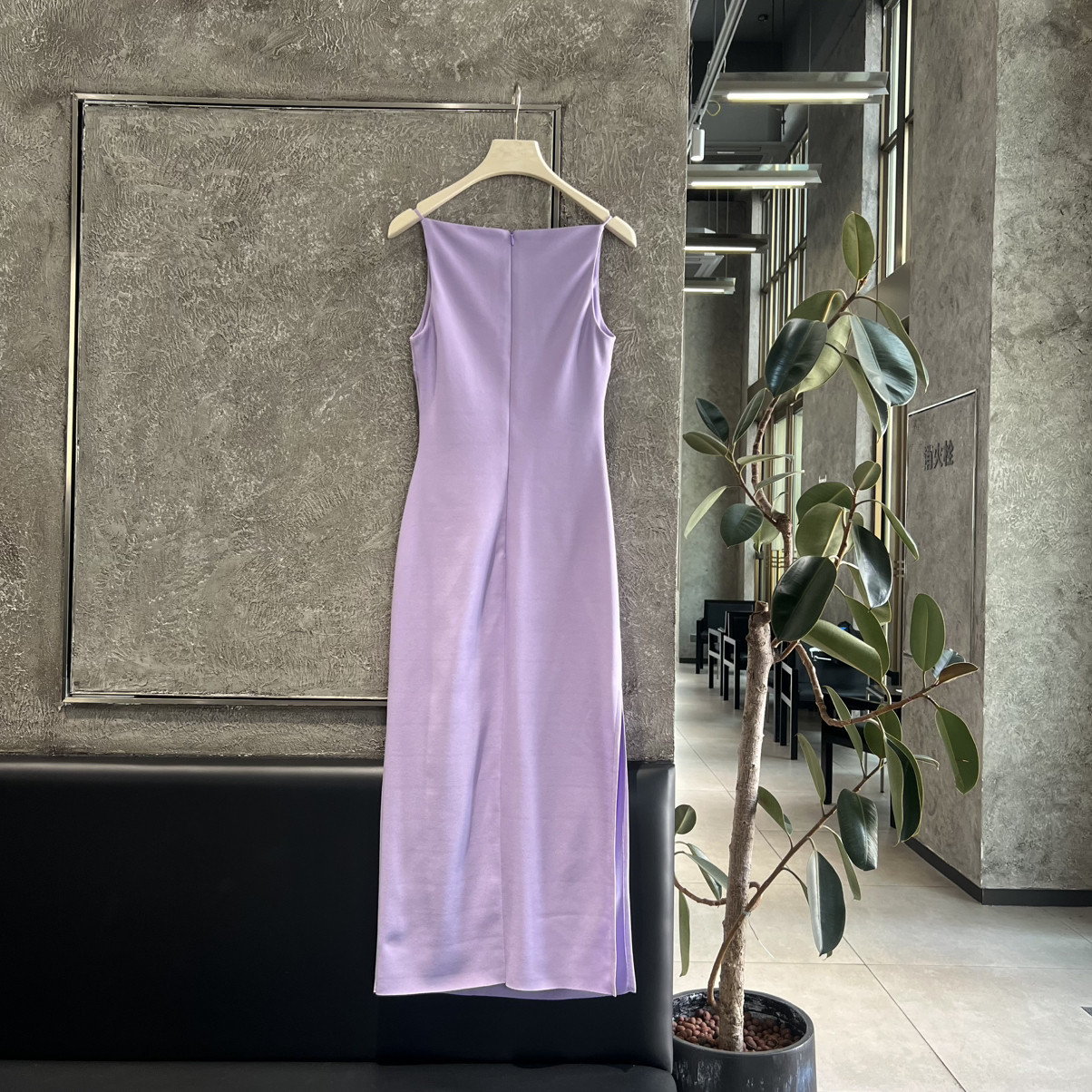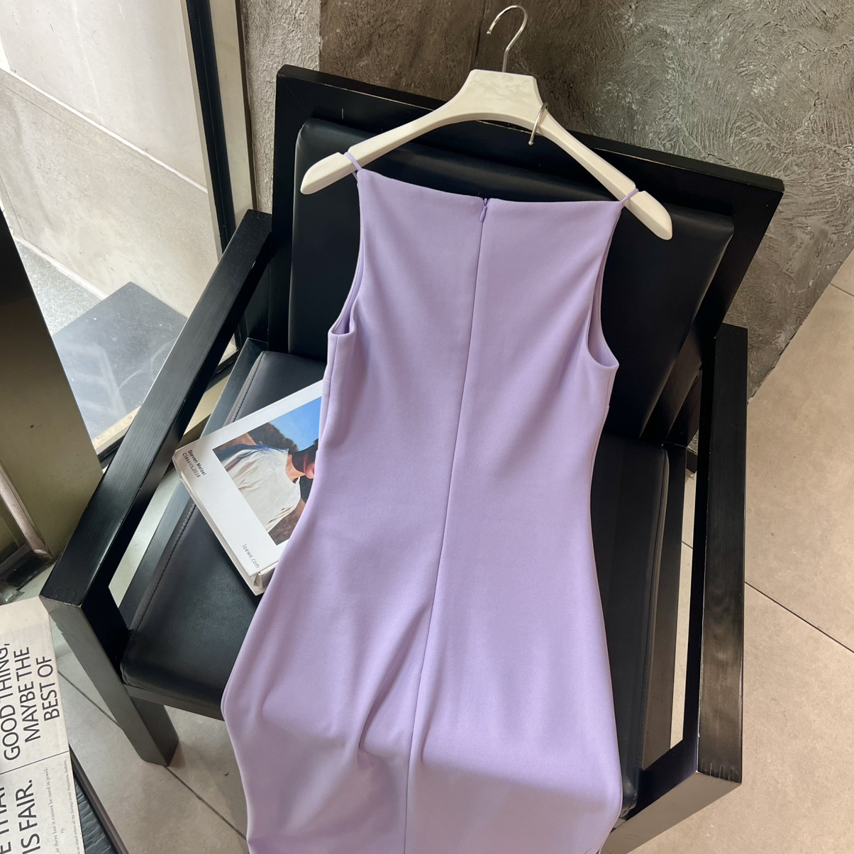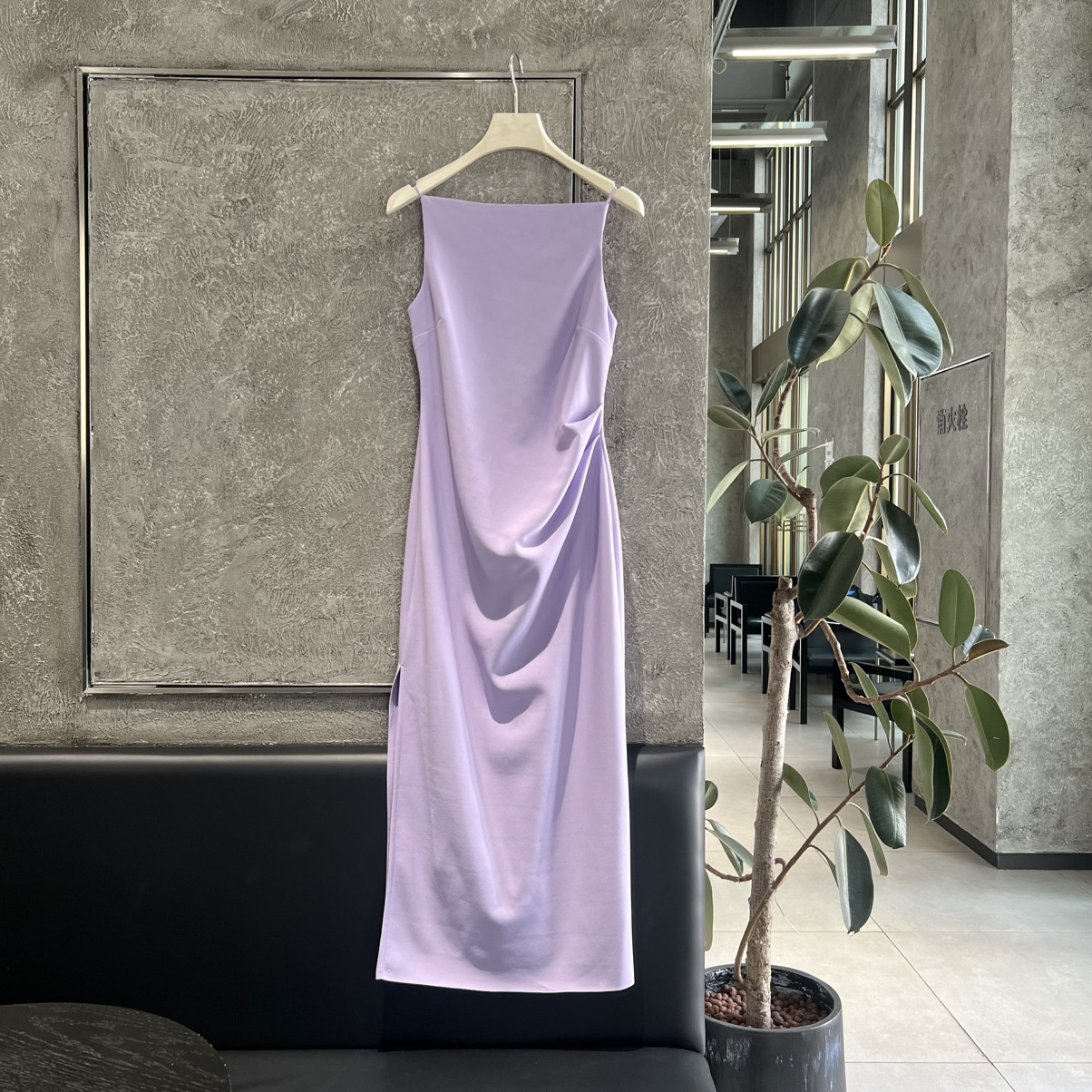 繁花店上新法式优雅风细带不规则褶皱开衩吊带连衣裙DM26030607