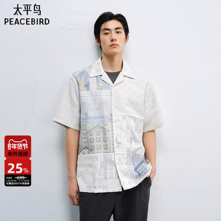 太平鸟男装 Daria Song联名外穿式提花满印夏季短袖衬衫男