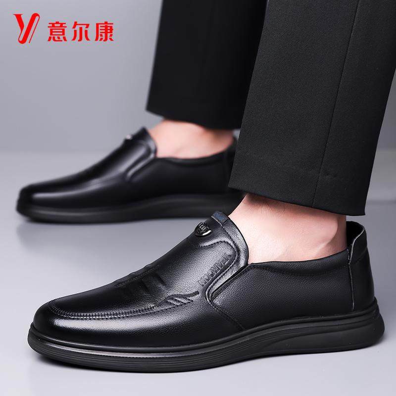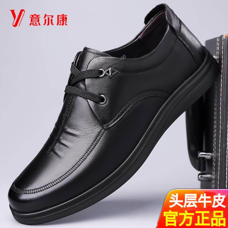 正品意尔康男鞋小码353637真牛皮软底透气男士休闲皮鞋大码454647