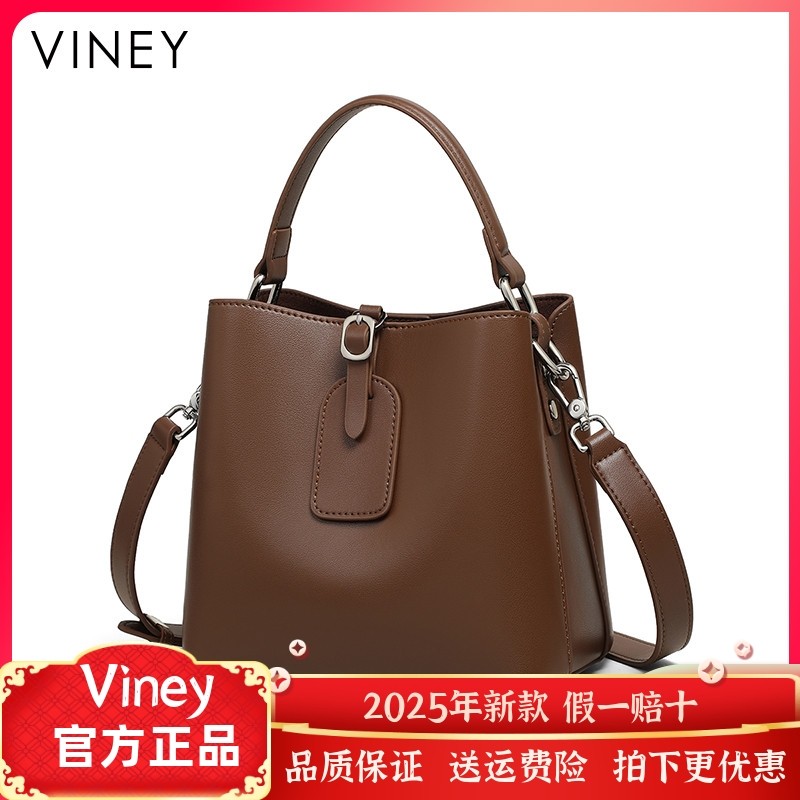 Viney水桶包包女2025新款秋冬斜挎包女包高级感大容量真皮单肩包