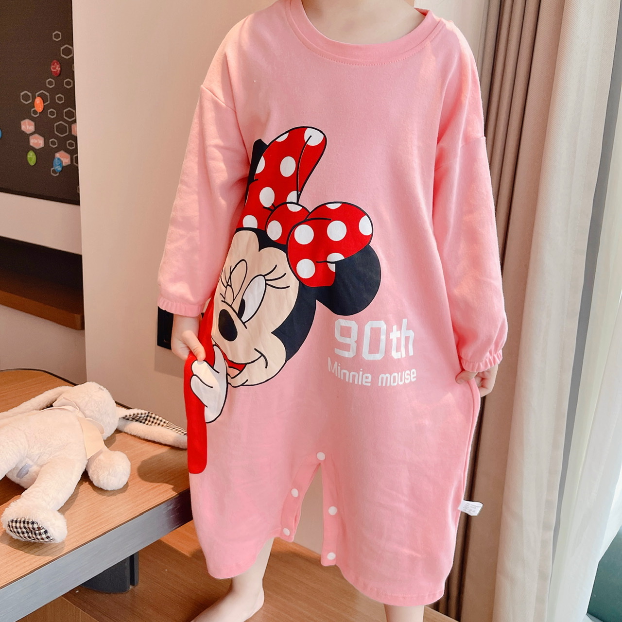 男童春秋季睡衣儿童纯棉睡裙宝宝睡袋连体衣女童长袖短裤按扣睡袍