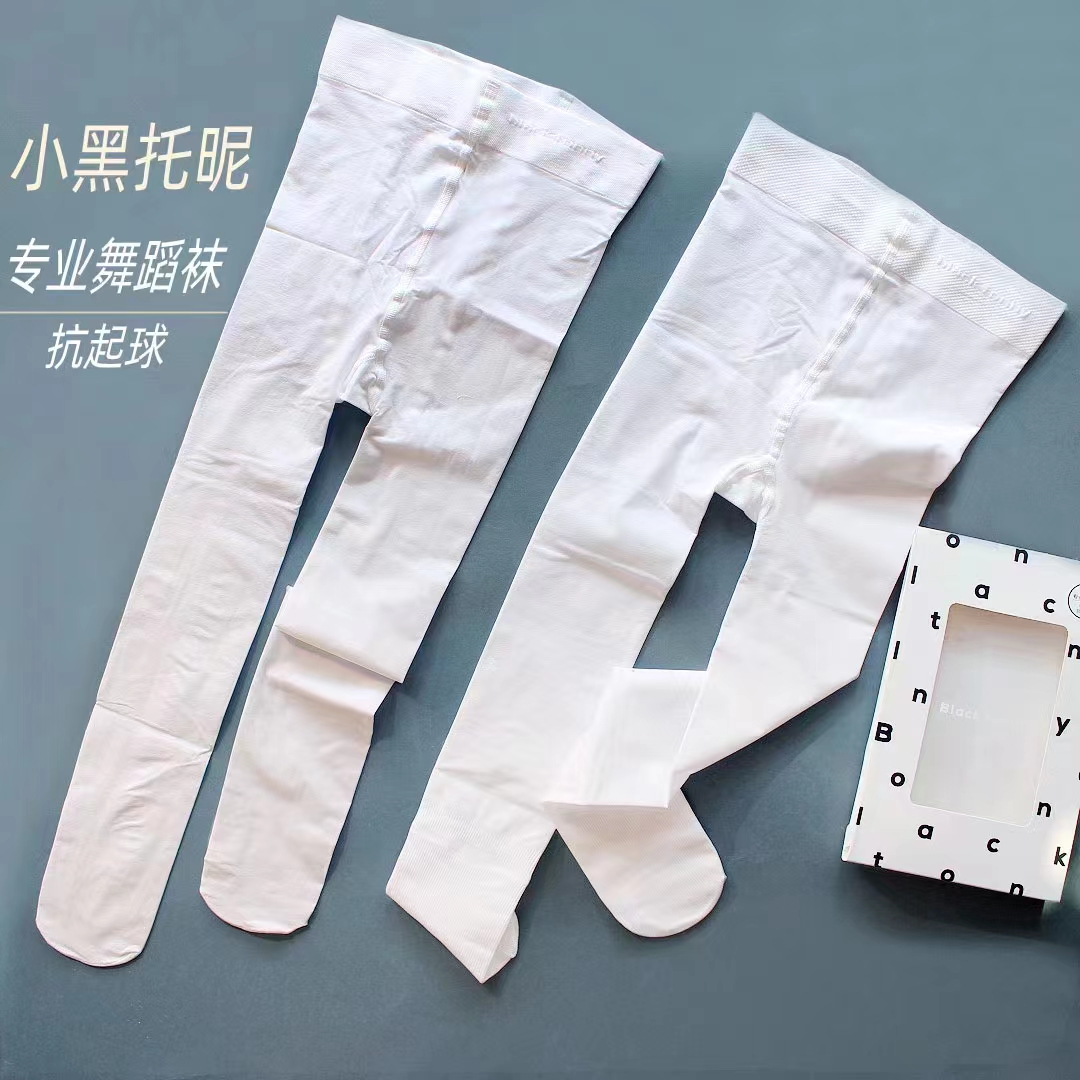 小黑托昵春秋薄款专业舞蹈袜女童防滑丝袜儿童白色连裤袜跳舞袜