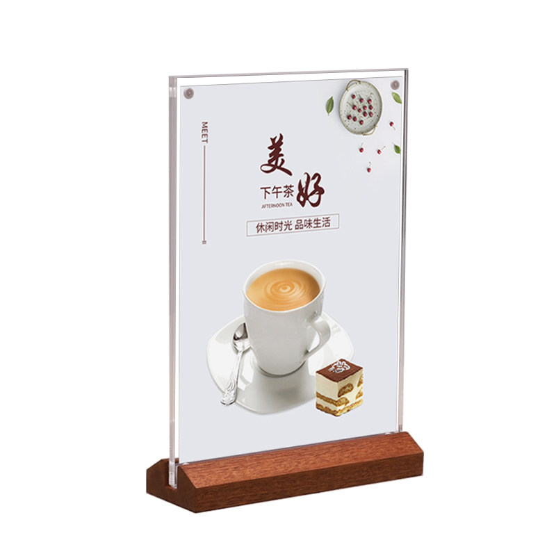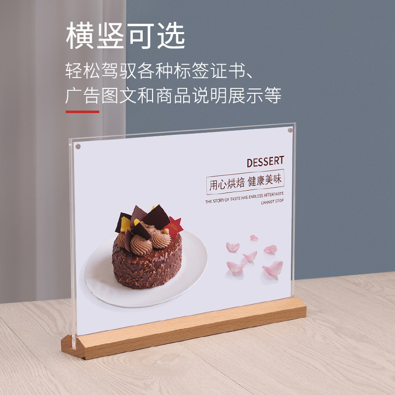 a4木质亚克力实木台卡架立牌双面a5菜单台牌a6广告桌面展示牌定制