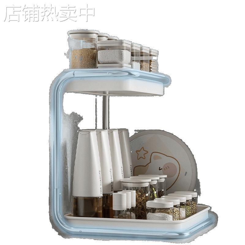 V9N奶油风厨房调料置物架台面转角旋转双层调味料调味品收纳调料