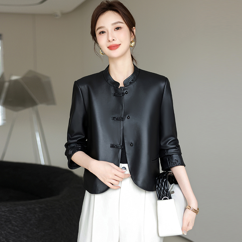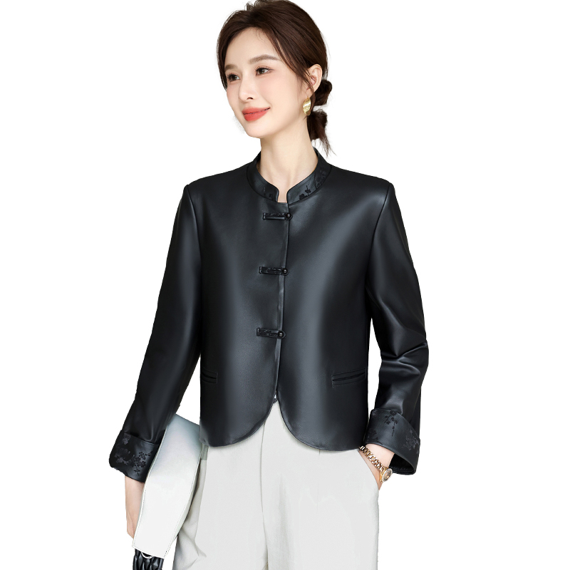 海宁真皮皮衣女短款高级感绵羊皮新中式长袖小个子韩版外套春秋