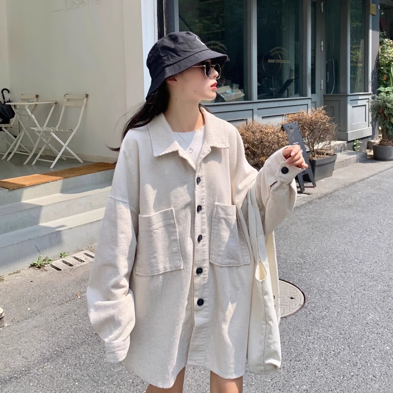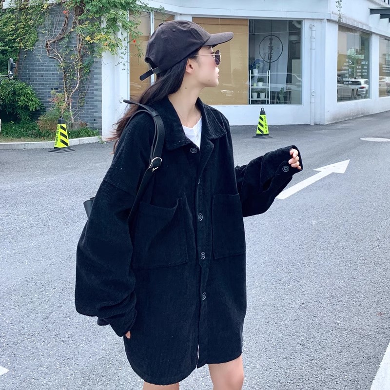加肥大码胖mm2-300斤长袖外套女春秋款设计感小众显瘦灯芯绒衬衫
