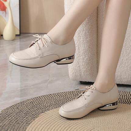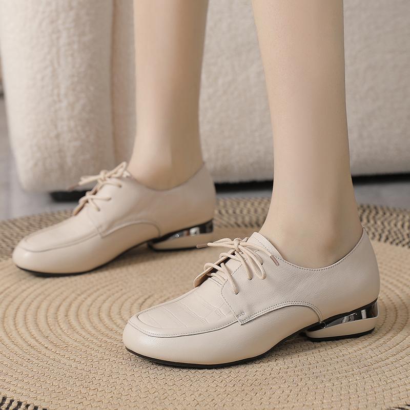 头层牛皮春秋皮鞋女真皮单鞋软底大码女鞋休闲平底系带低跟妈妈鞋
