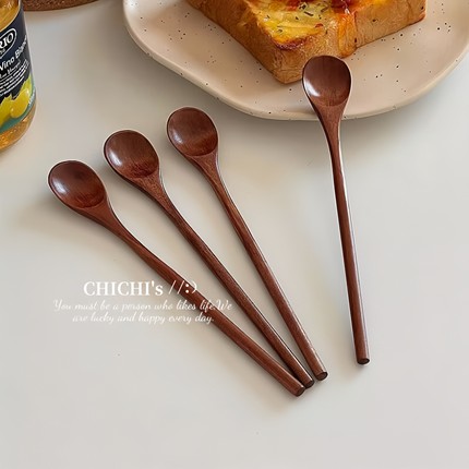中式复古实木长柄搅拌勺子咖啡勺奶粉搅拌棒蜂蜜调羹勺子