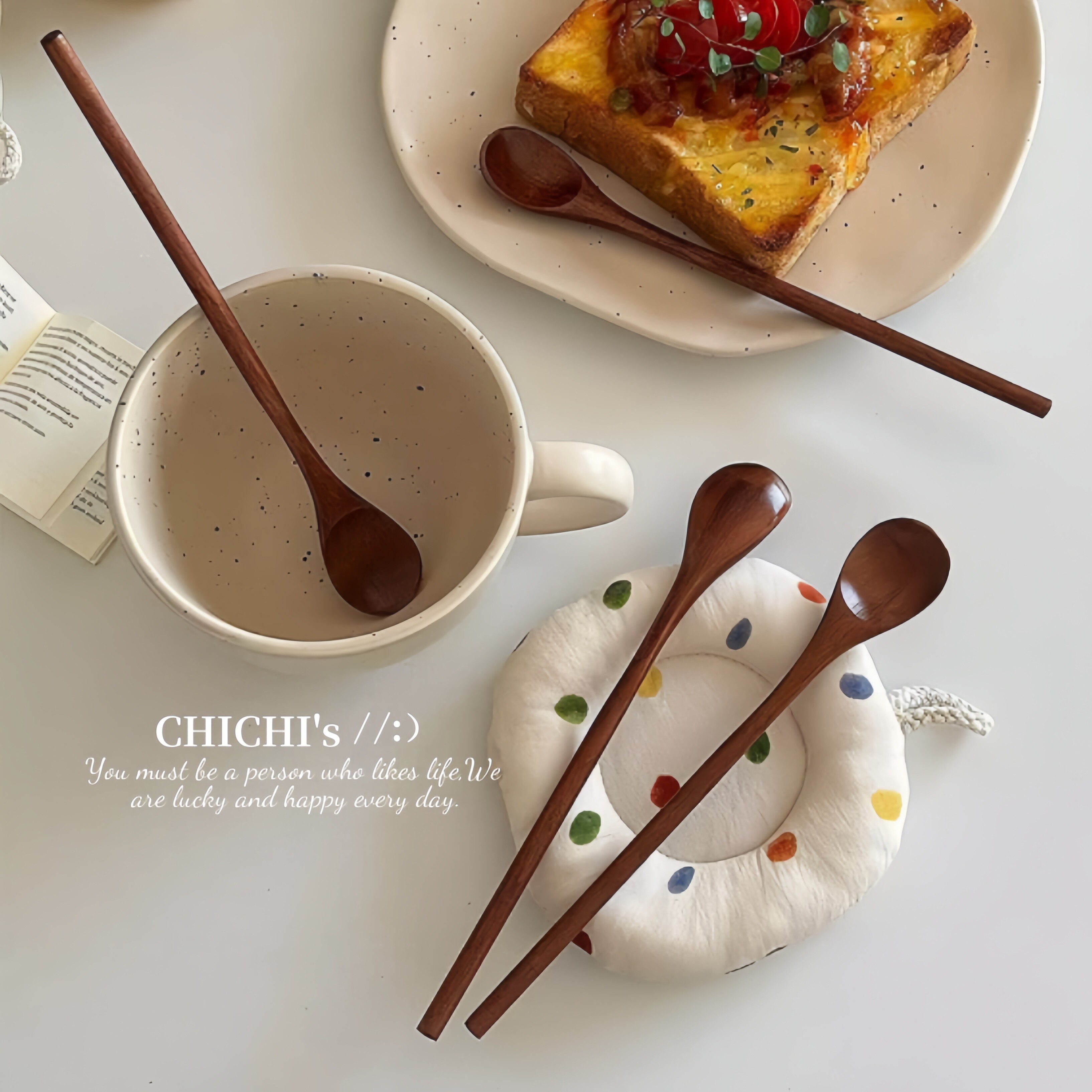 中式复古实木长柄咖啡勺