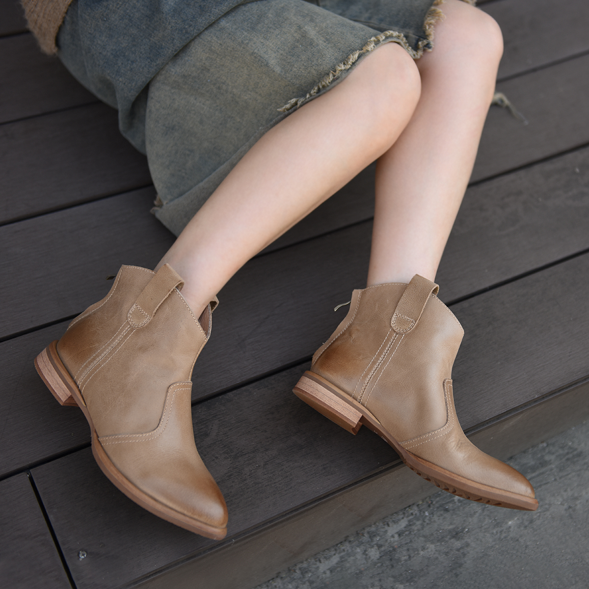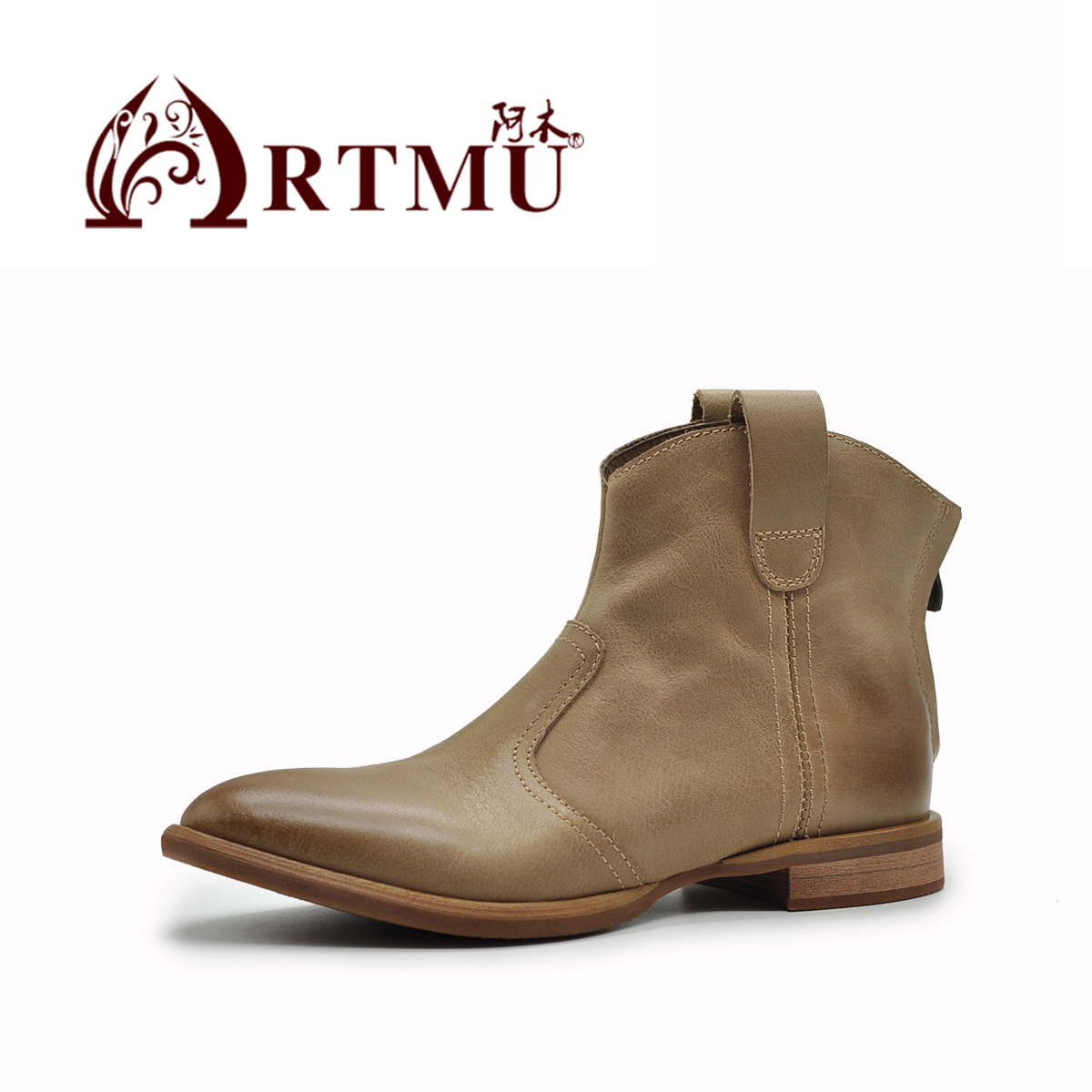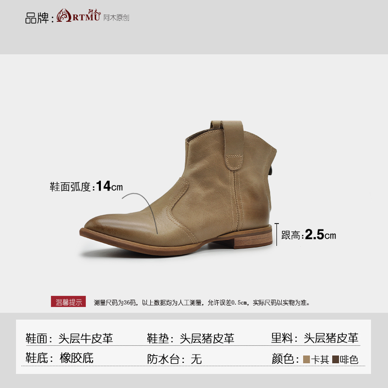 Artmu阿木原创英伦风小马靴真皮新款尖头短靴女马丁靴西部牛仔靴