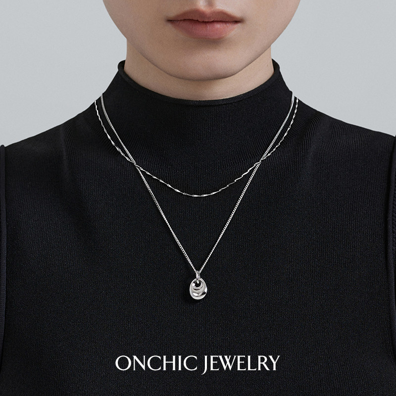明星同款Onchic水滴项链女锁骨链高级感轻奢小众简约吊坠颈链银色