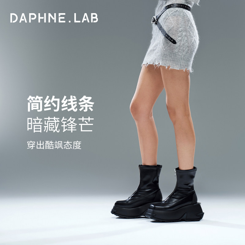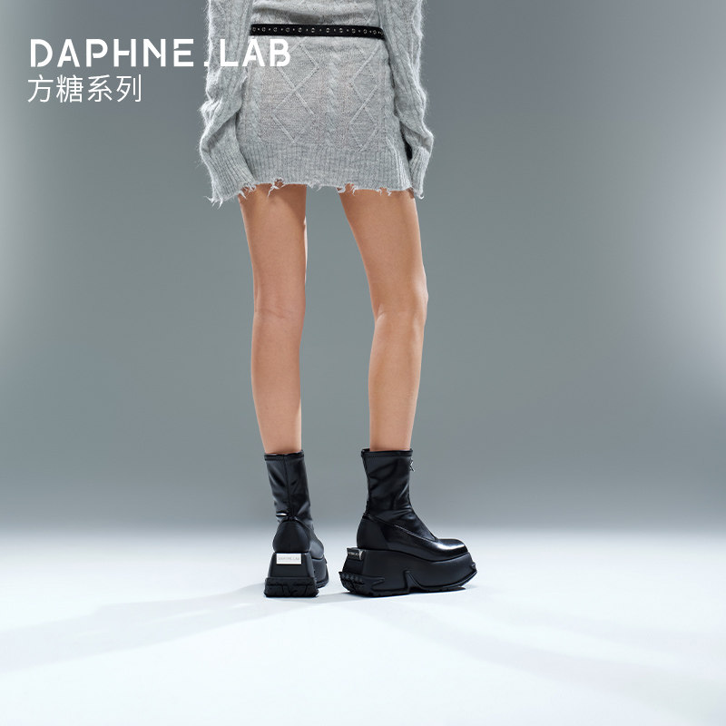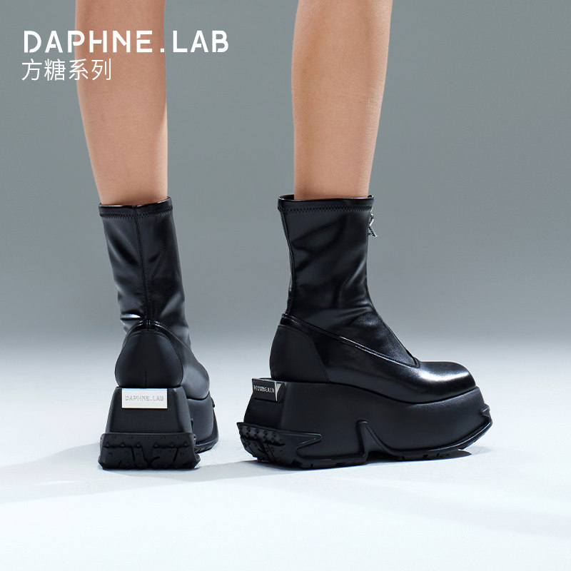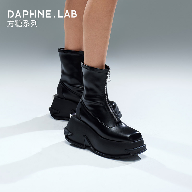 DAPHNE LAB方糖系列厚底机能拉链短靴厚底增高百搭弹力短靴女