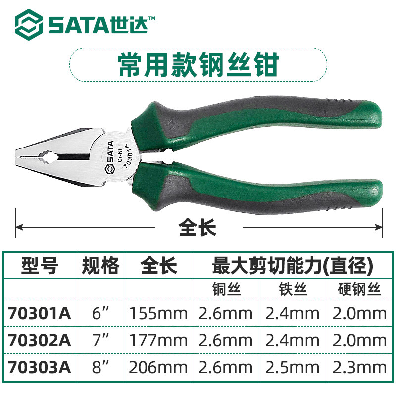 世达钢丝钳工具6寸8寸克丝钳子工业级绝缘耐压断线钳省力老虎钳