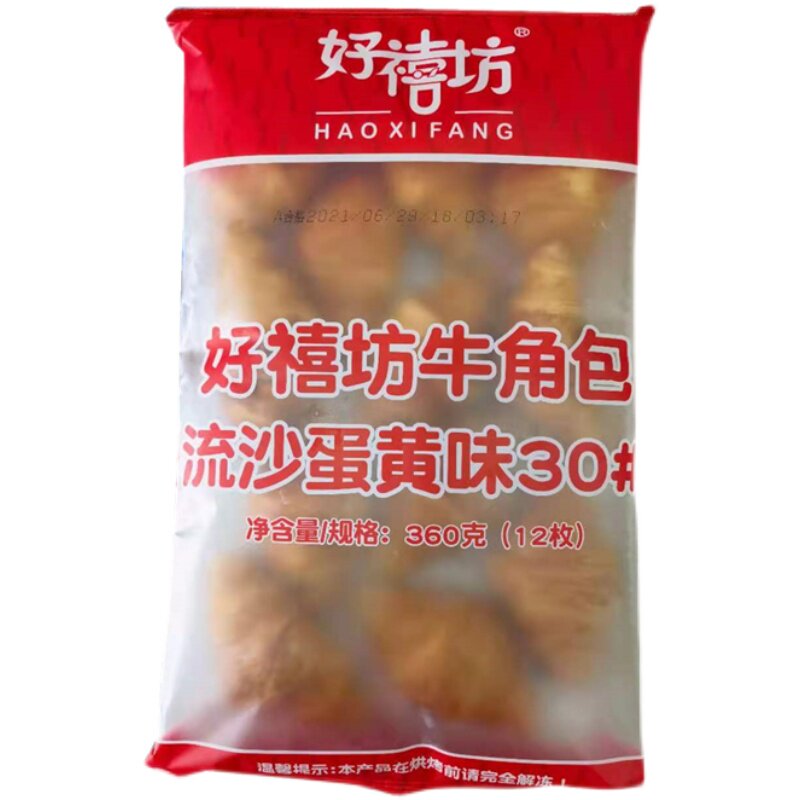 奥昆好禧坊牛角包流沙蛋黄味单包12个加热即食冷冻半成品烘焙原料