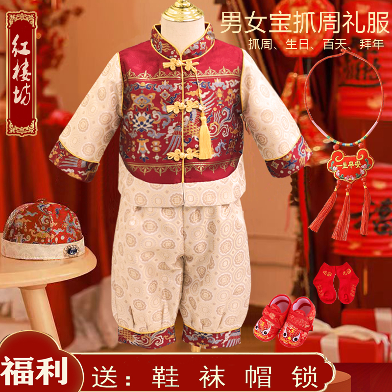 男宝宝秋冬新款周岁礼服新中式生日宴抓周服儿童唐装生日冠衣套装