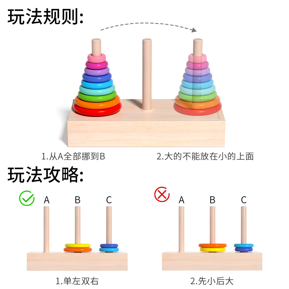 汉诺塔小学生10层比赛专用大号5六7八8十6阶儿童益智思维训练玩具