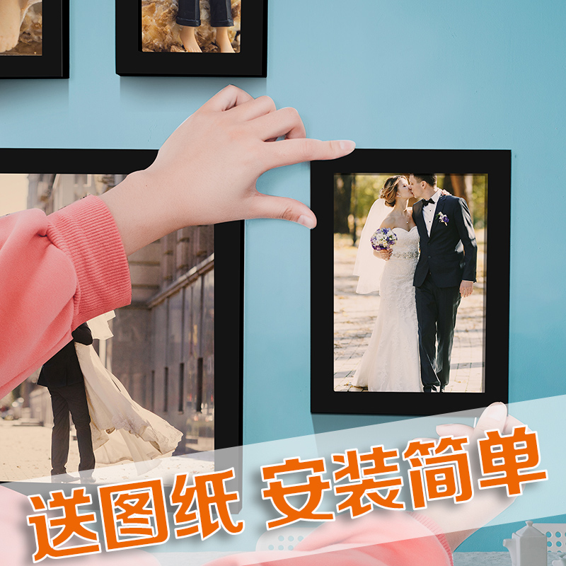简约实木照片墙相片墙相框挂墙客厅装饰创意组合免打孔洗照片