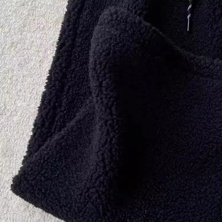 清仓尾货~专柜尾货黑色摇粒绒休闲束脚裤子韩系小众羊羔阔腿裤子
