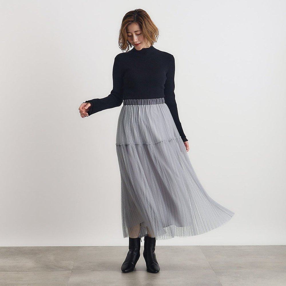 日本直邮grove 圆点雪纺百褶裙 [GR1241EW050325]