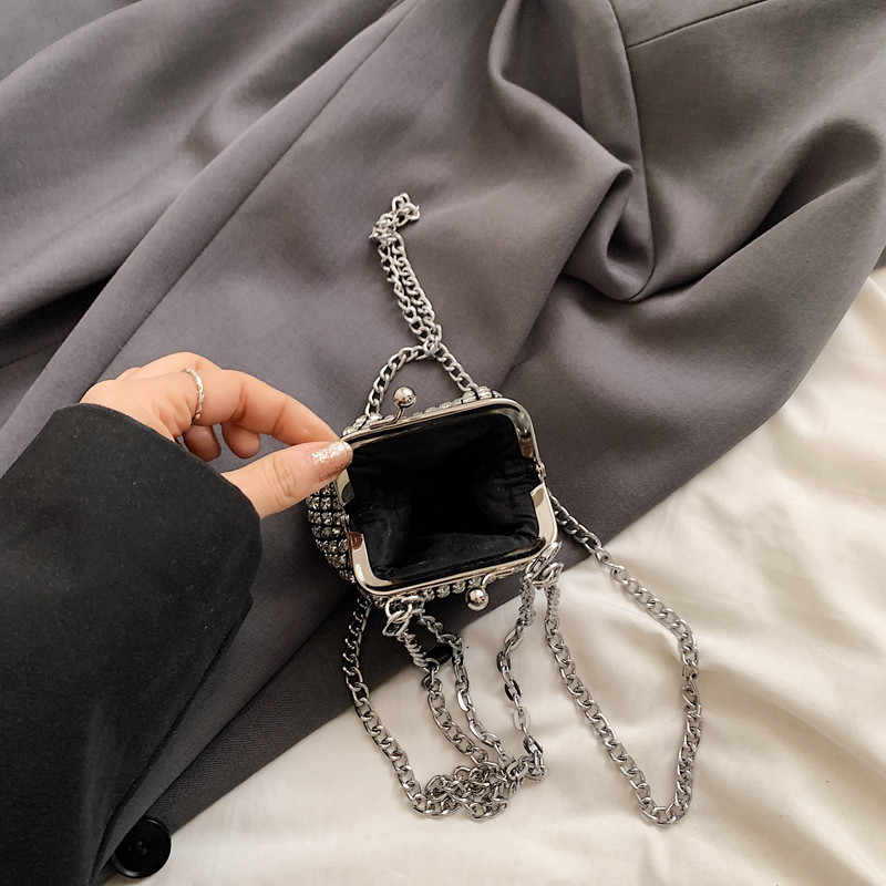 迷你水钻包女2025新款高级感满钻小包包精致链条斜挎包时尚口金包