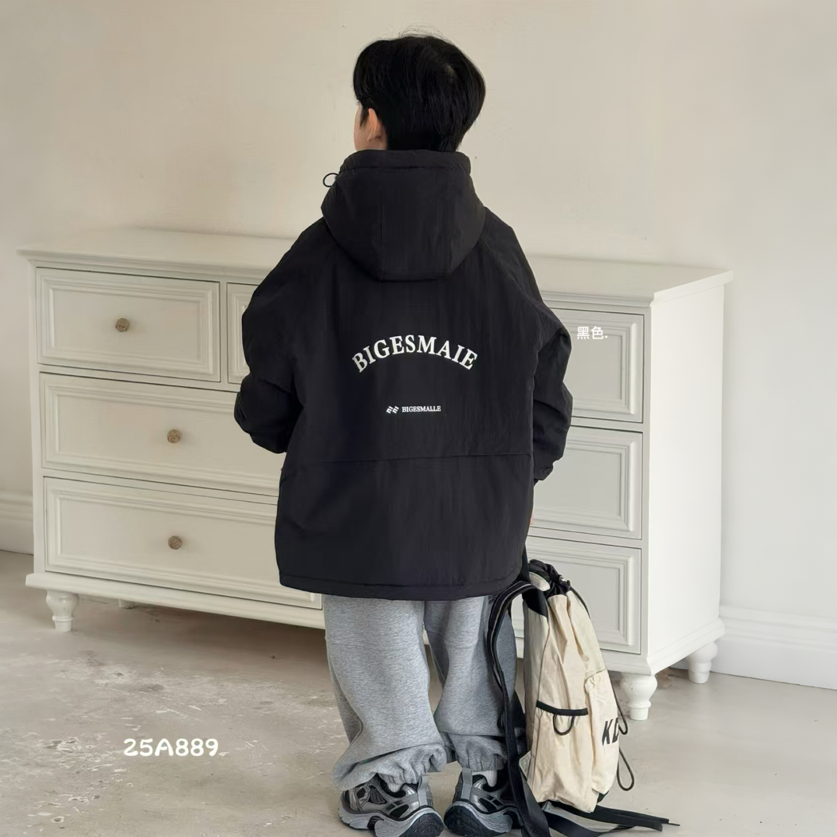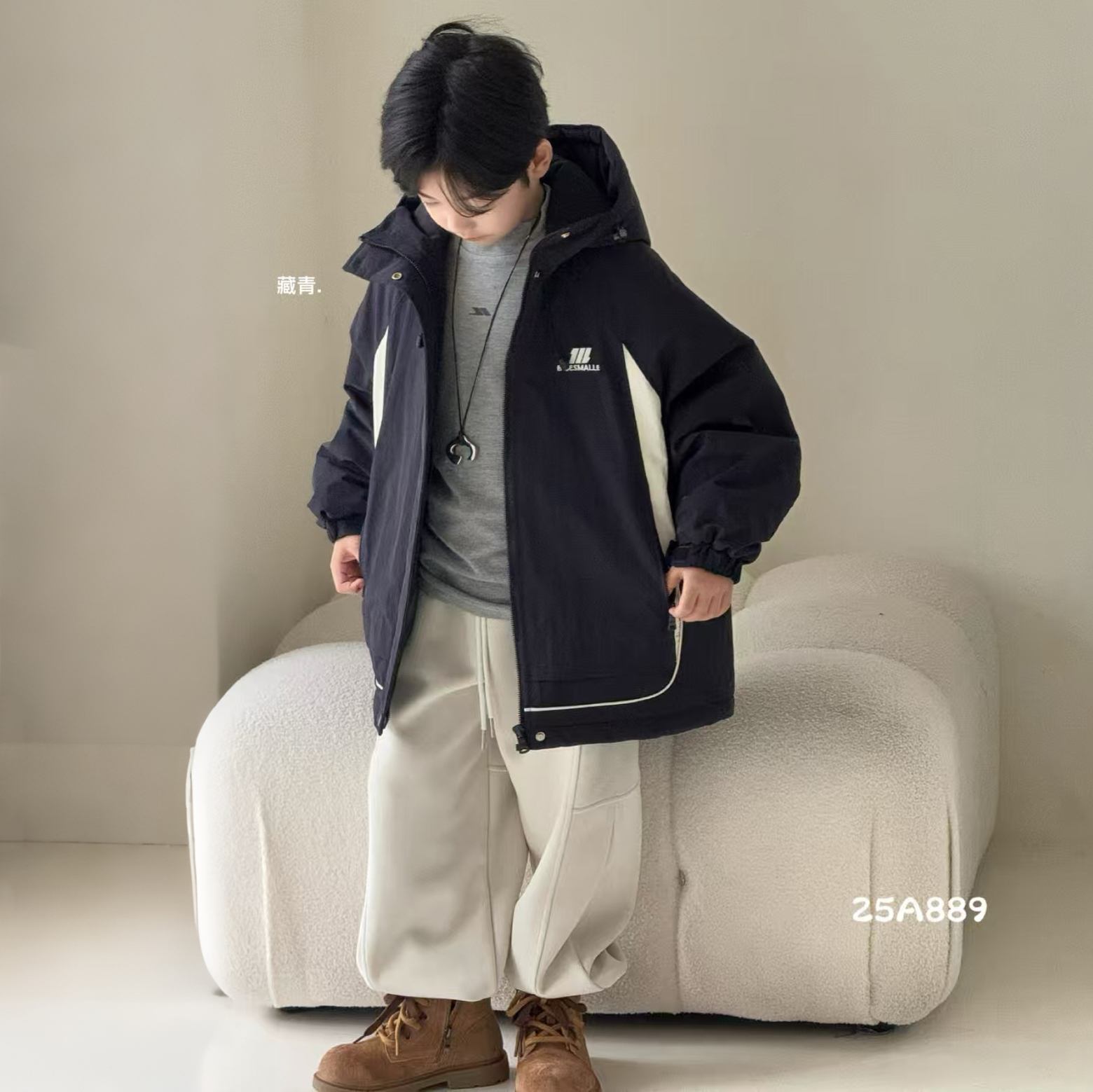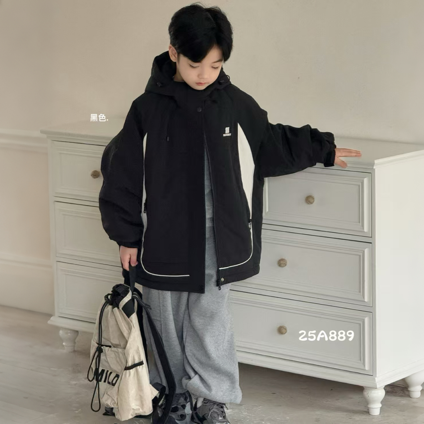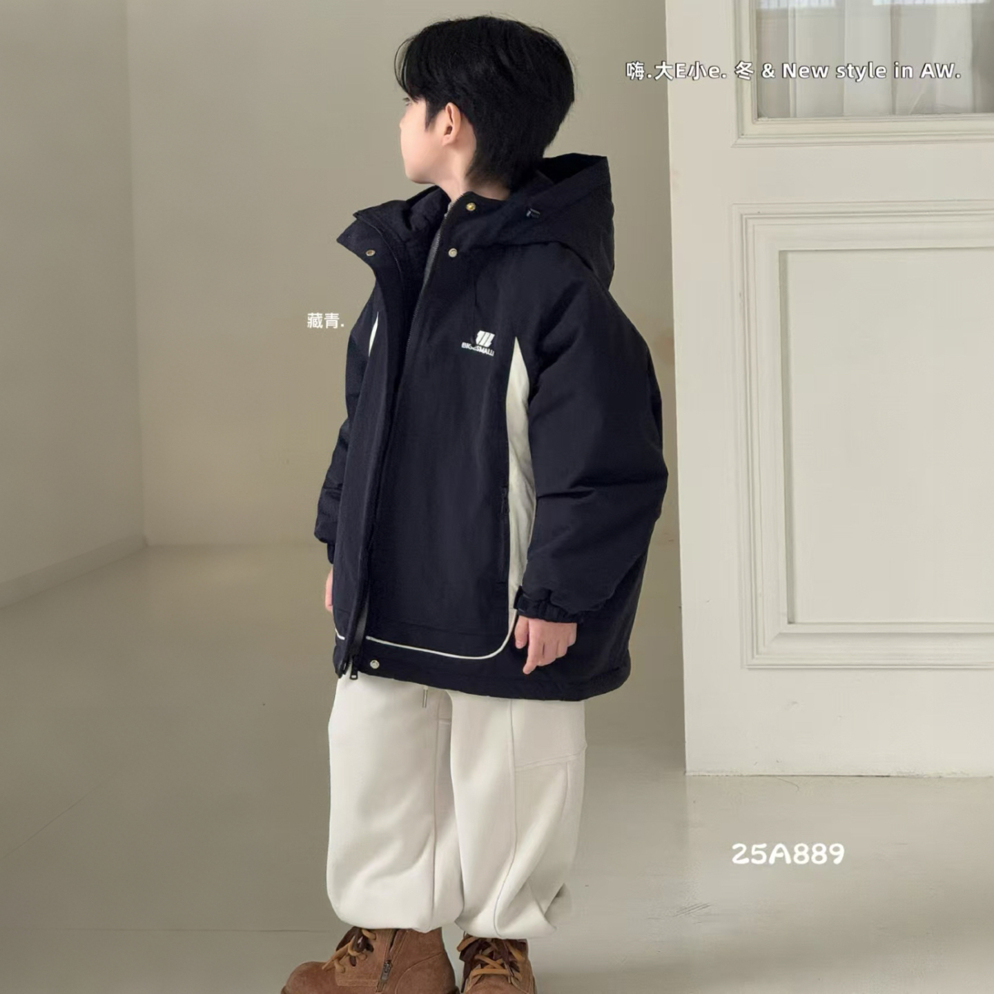 大E小e童装冬新款男童女童连帽撞色冲锋衣夹棉外套儿童棉服25A889