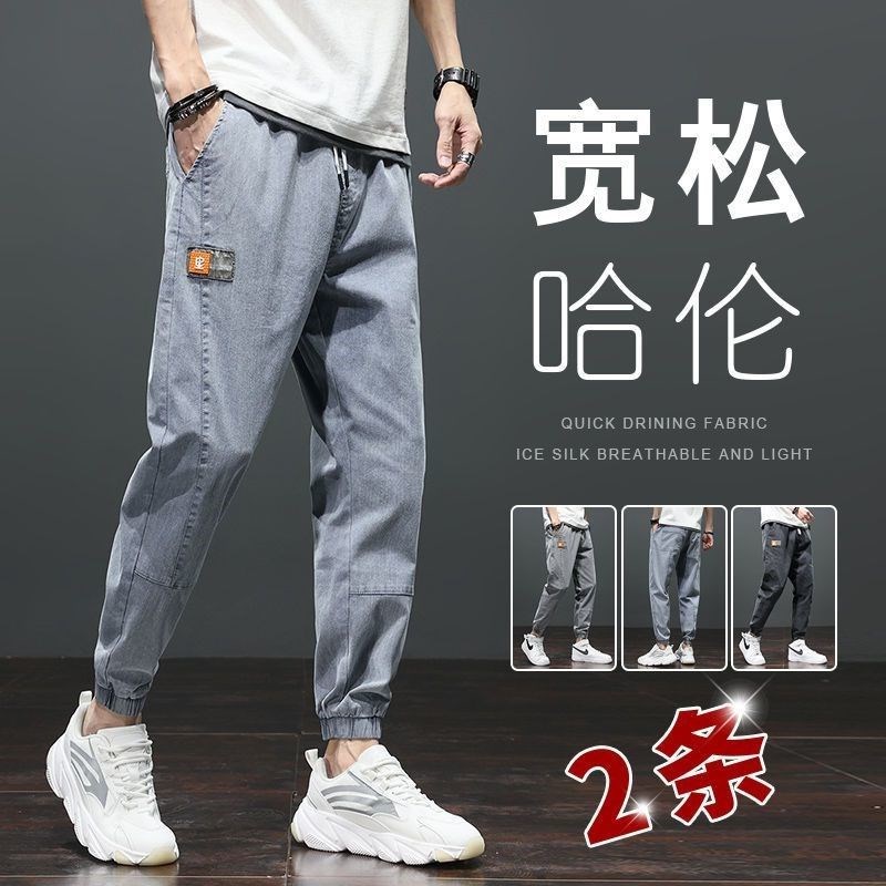 牛仔裤男夏季薄款2024年男裤宽松九分夏天潮束脚哈伦休闲裤子男款