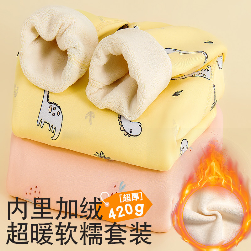 女童保暖衣套装加绒加厚冬季儿童保温内衣宝宝打底秋衣裤女孩睡衣