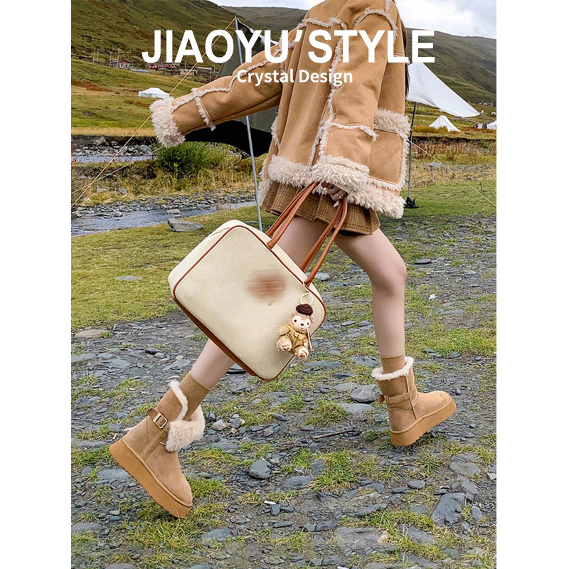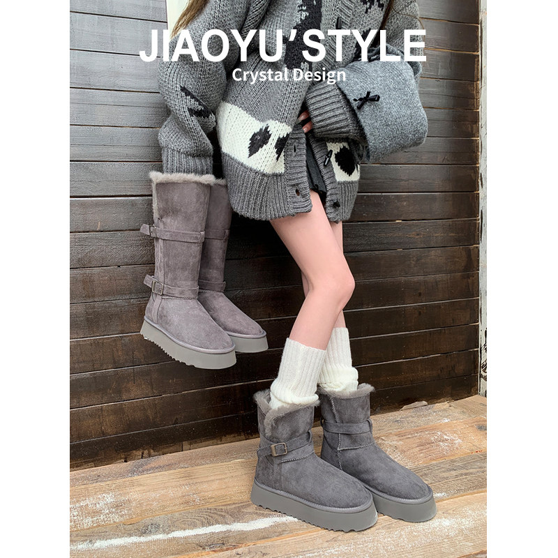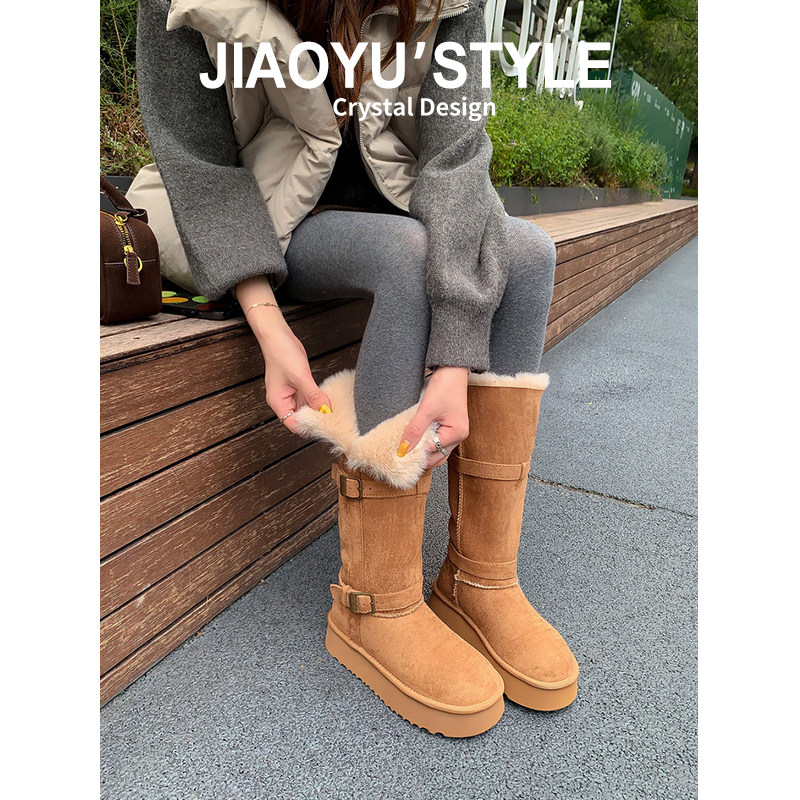 骄屿厚底两穿雪地靴女2025秋冬新款东北加厚加绒棉鞋不过膝长筒靴