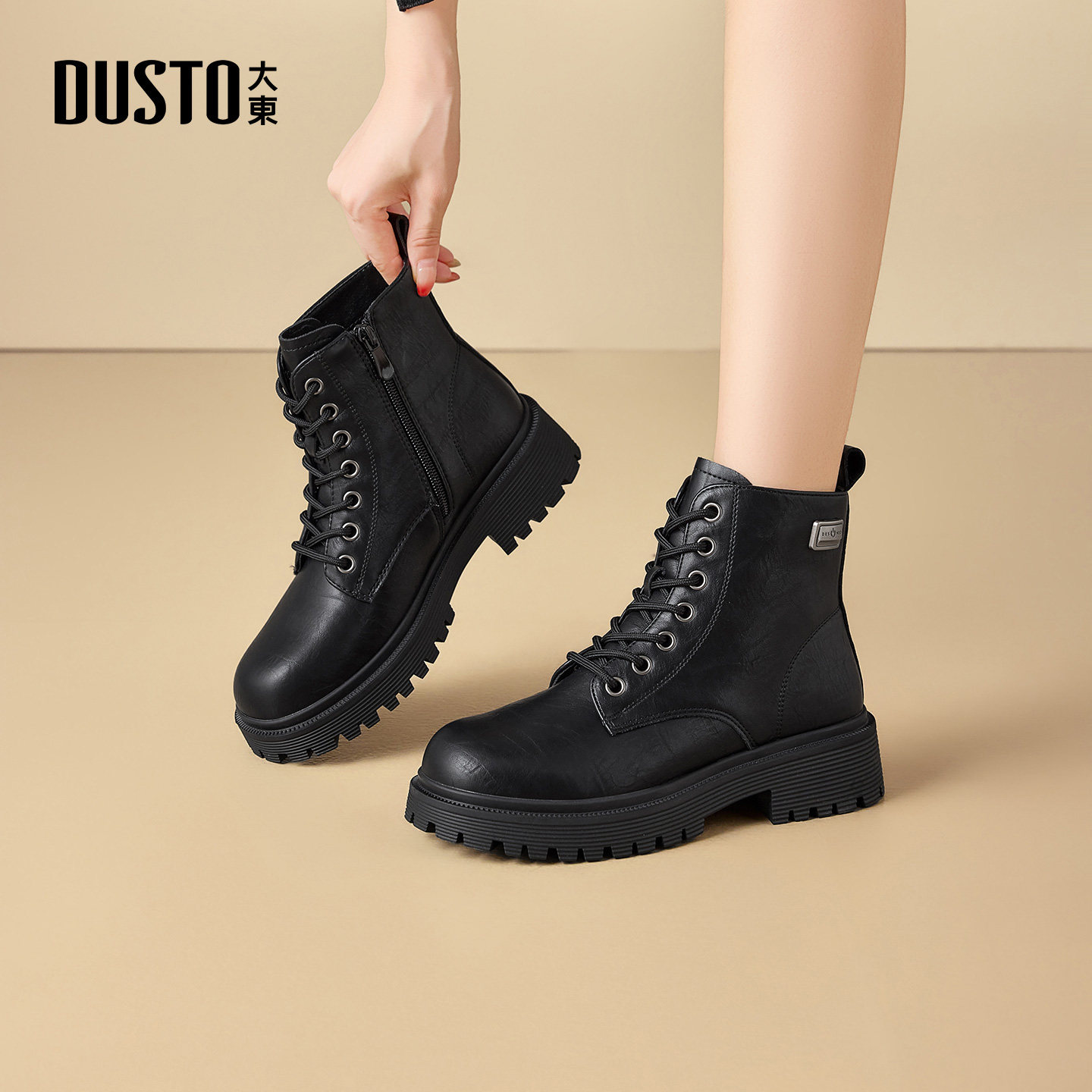 大东官方厚底马丁靴女款2025新款冬季加绒靴子女靴英伦风复古短靴