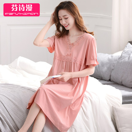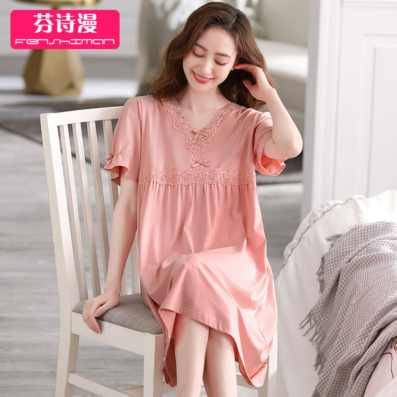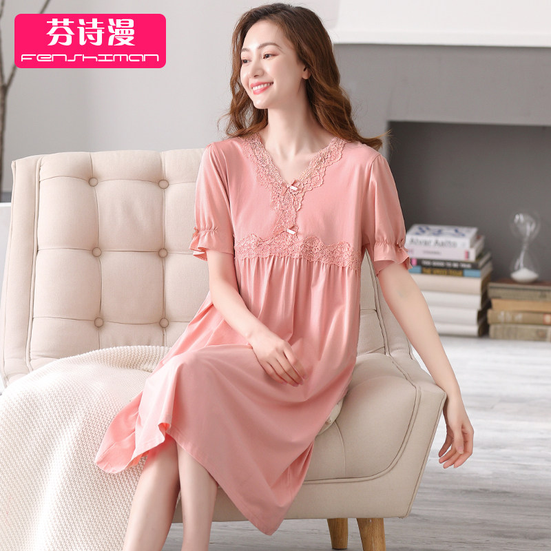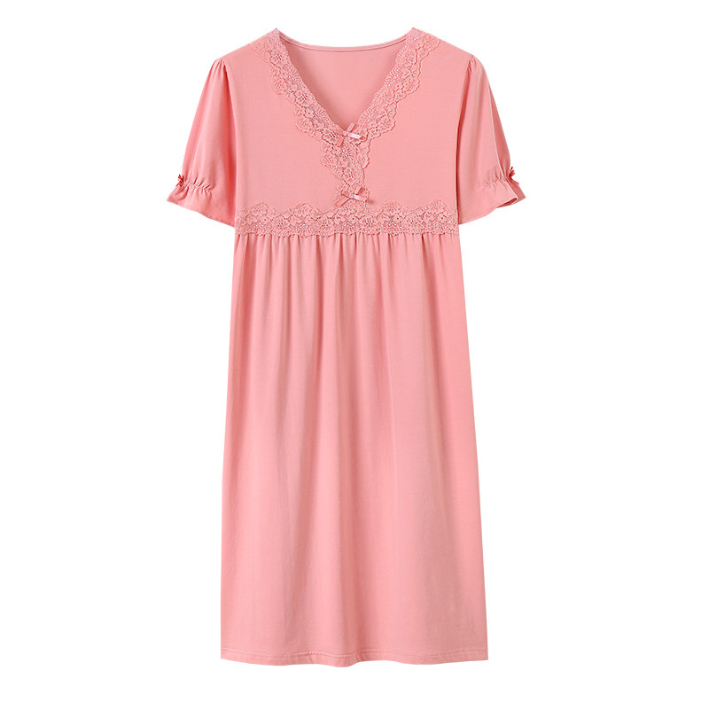 带胸垫睡裙女夏季莫代尔短袖睡衣长款夏天女款冰丝夏款妈妈连衣裙