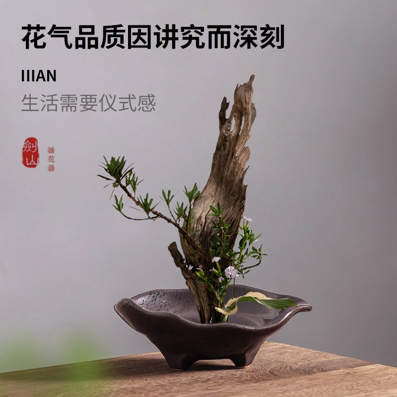 仿古剑山插花器陶瓷家居大口径花盆室内水培花艺装饰摆件插花器皿