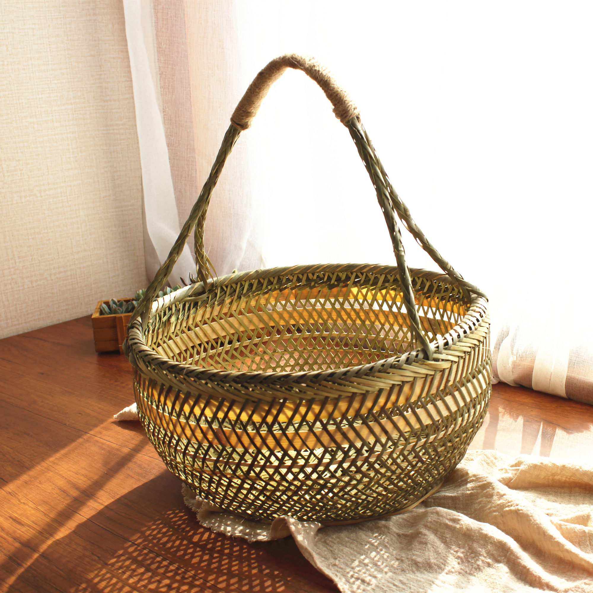 圆竹篮竹编子手提鸡蛋包装篮收纳篮筐蔬菜框购物篮水果篮小菜篮