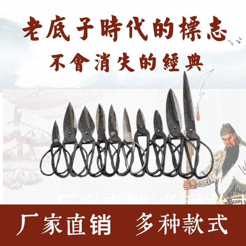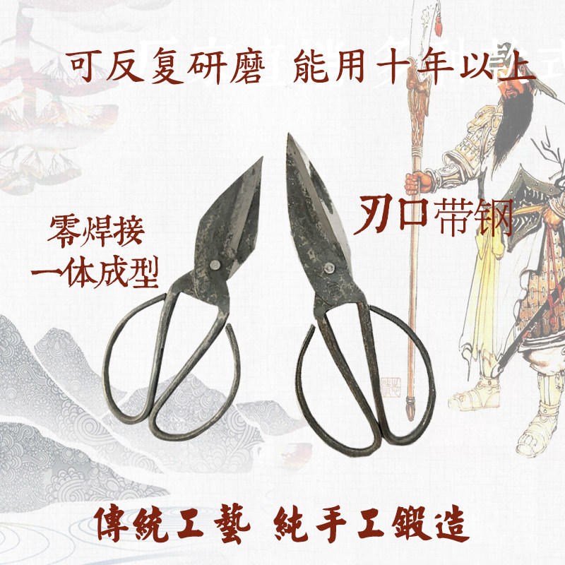手工锻打大剪刀铁皮杀鸡甲鱼剪强力厨房老式铁剪刀橡胶皮革羊毛