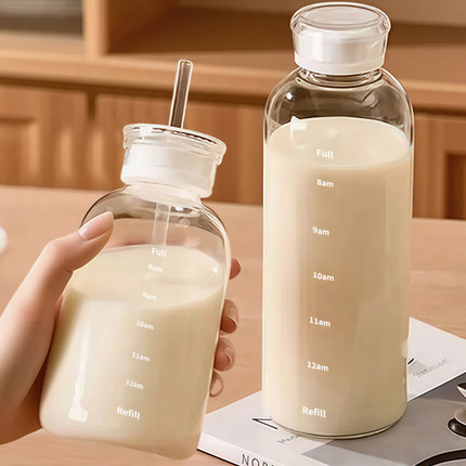 日本豆浆杯上班族便携外带早餐专用刻度牛奶杯儿童可加热玻璃杯子