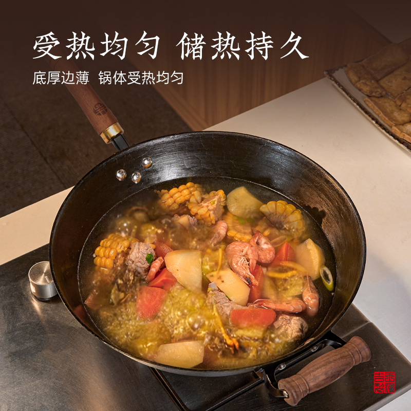 【蜂狂双11】王源吉古法铁锅铸铁锅炒菜锅老式新一代生铁不粘炒锅