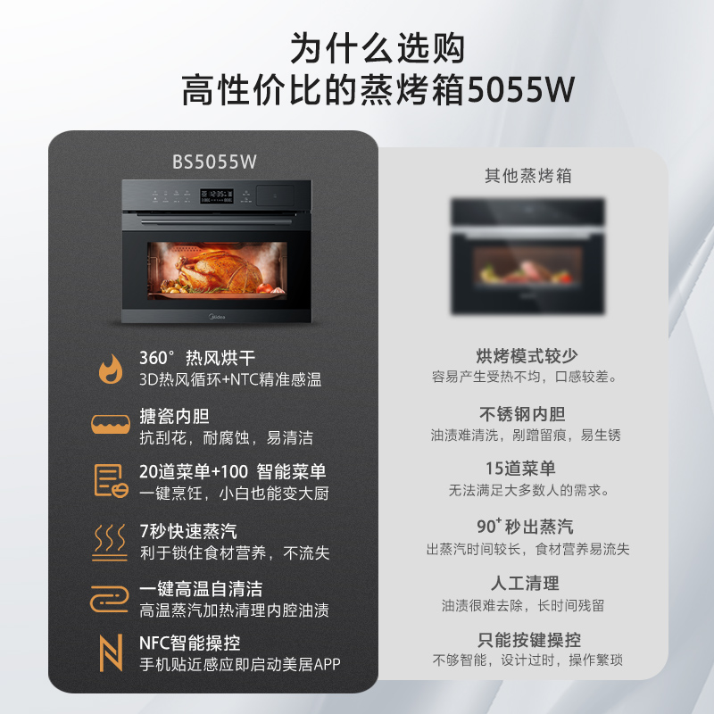 【旗舰爆款】美的蒸烤一体机嵌入式蒸烤箱家用烤箱蒸箱BS5055W